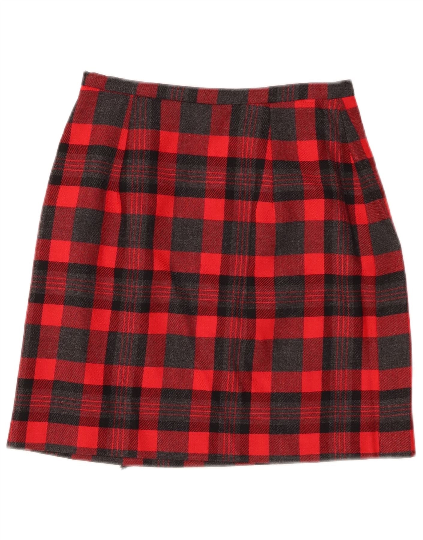 VINTAGE Minifalda de mujer W22 2XS Lana a cuadros roja