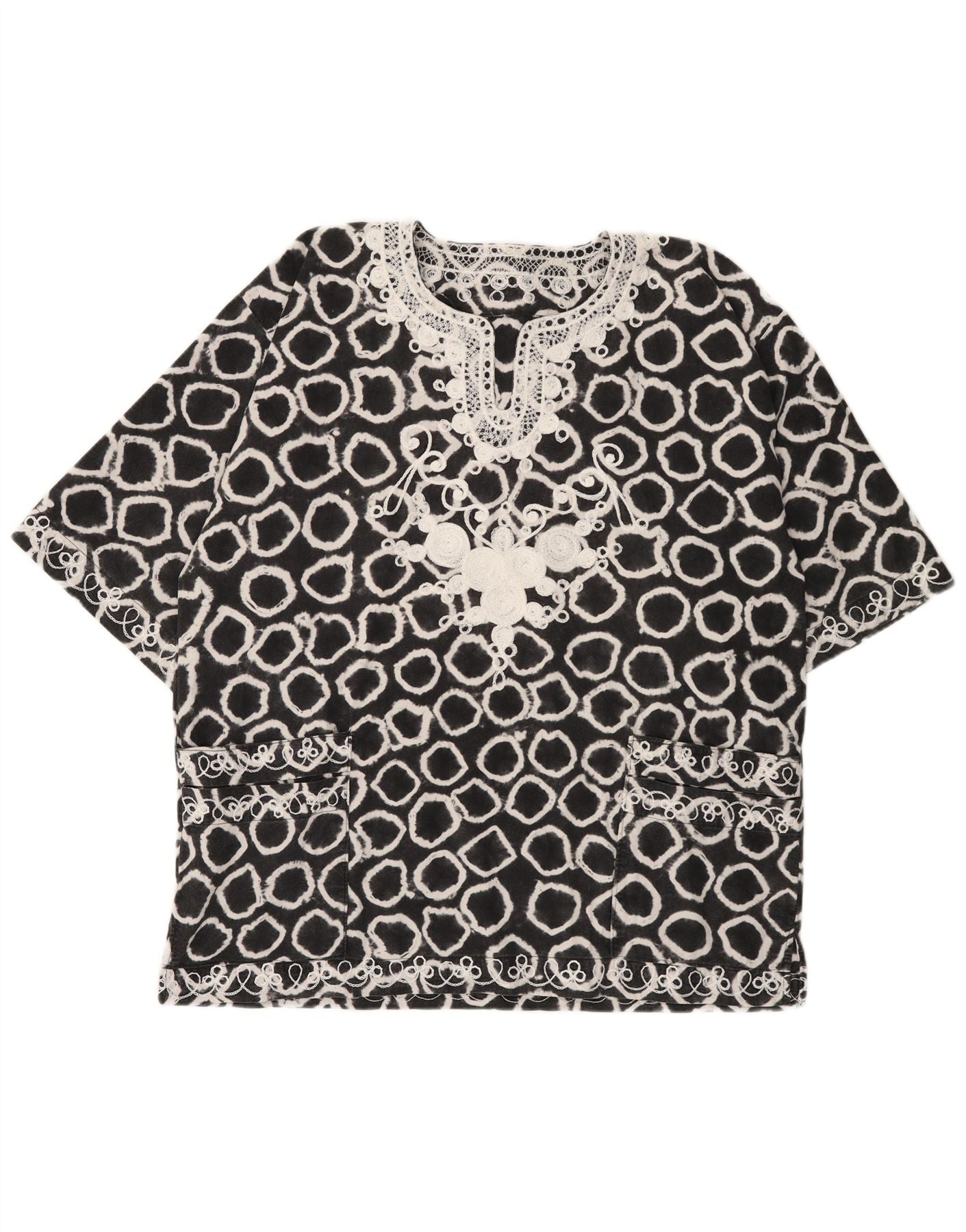VINTAGE Blusa de patrón abstracto de gran tamaño para mujer Top UK 18 XL Negro