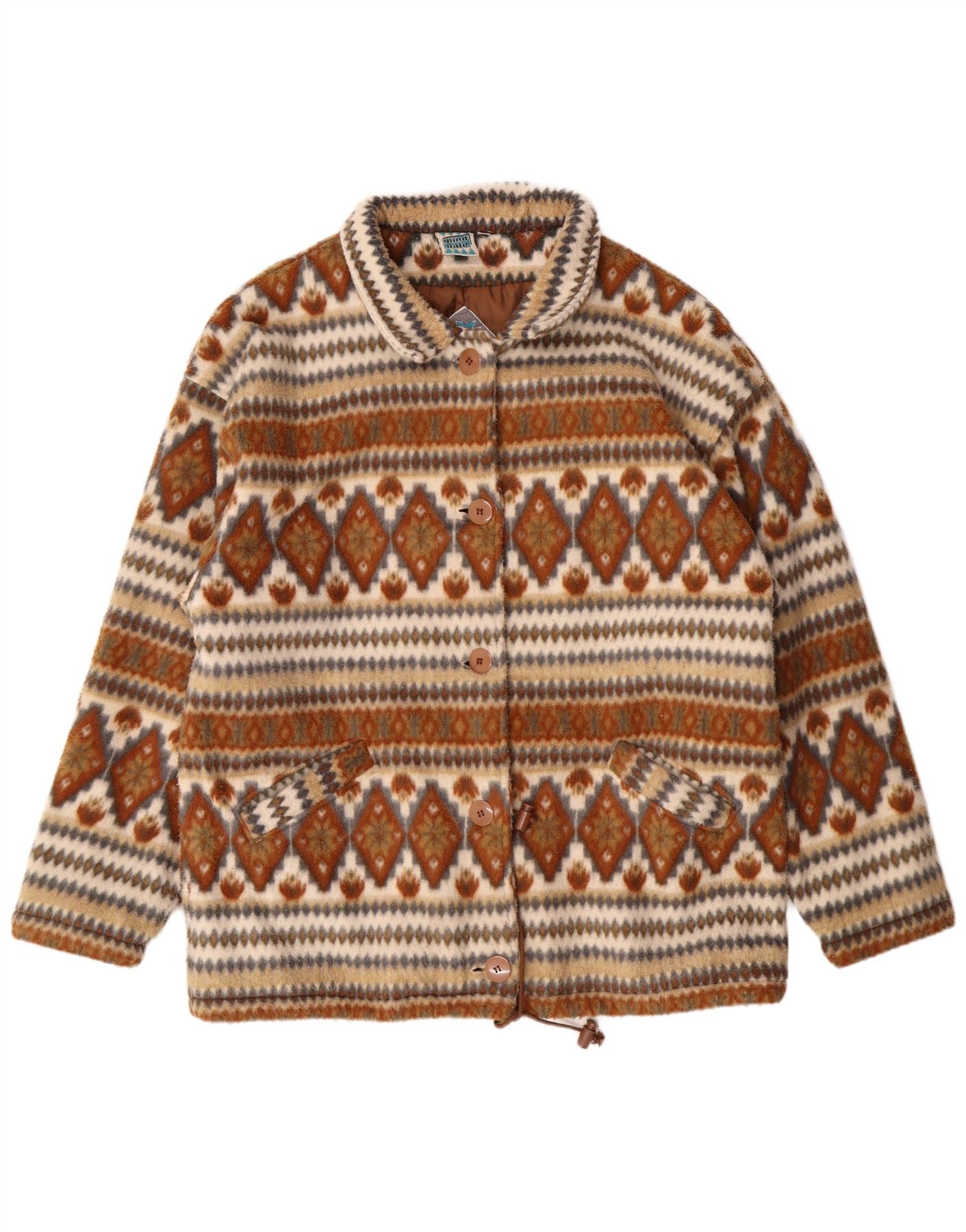 VINTAGE Chaqueta bomber de gran tamaño para mujer Reino Unido 14 Marrón Medio Fair Isle