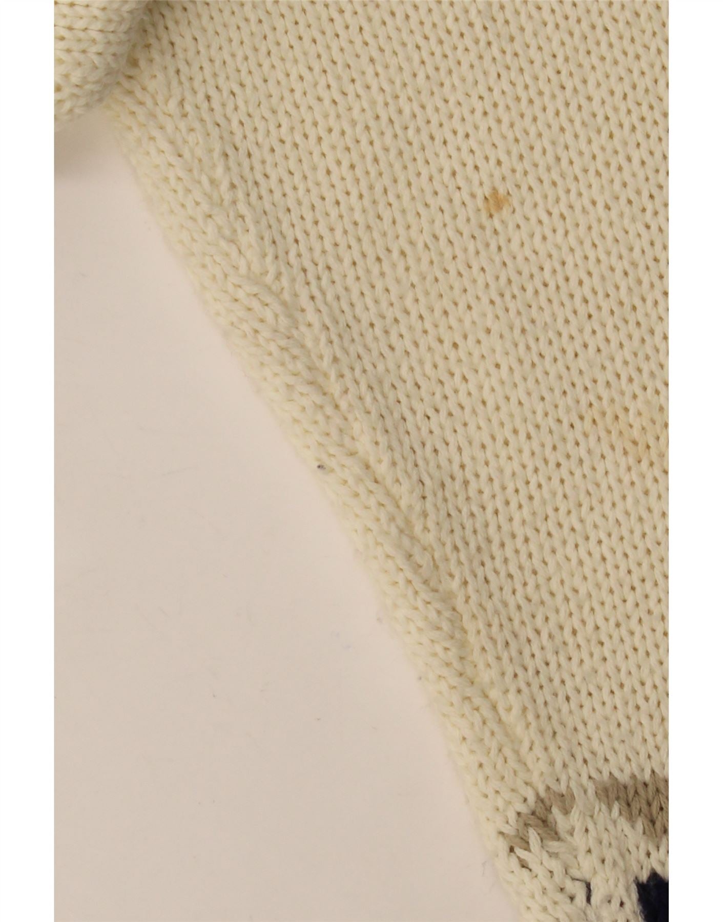 VINTAGE suéter cárdigan de gran tamaño para mujer Reino Unido 10 pequeño geométrico blanco apagado