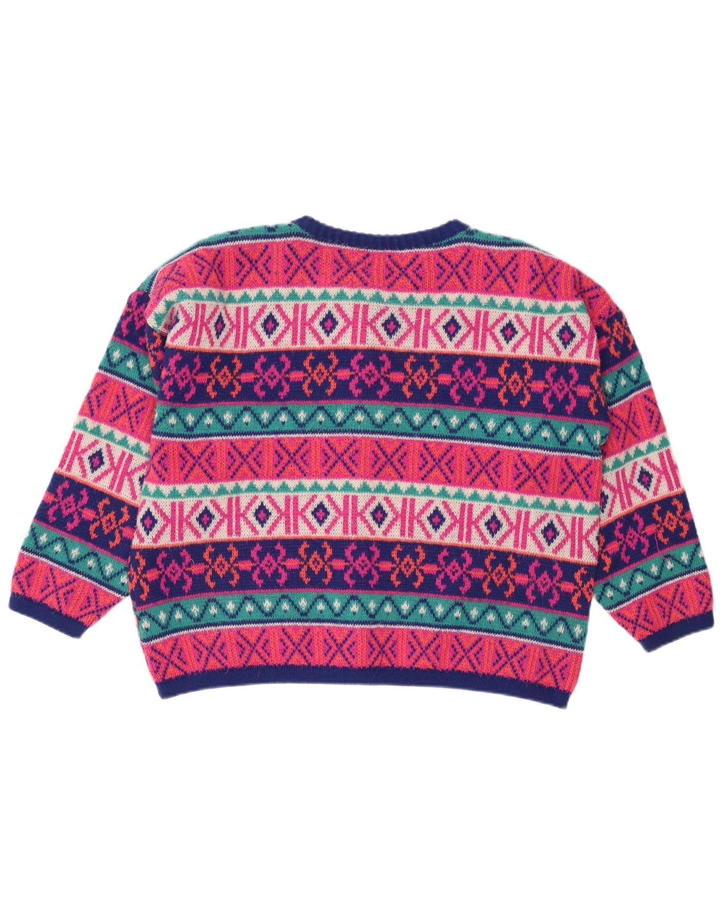 - Descripción de IA: Este suéter tipo cárdigan vintage para mujer está confeccionado con un tejido de punto suave. Presenta un vibrante patrón Fair Isle multicolor, que combina tonos de rosa, azul y verde. El escote redondo y las mangas largas ofrecen una comodidad clásica. Un frente con botones proporciona un cierre fácil. Su ajuste relajado y holgado garantiza un uso cómodo. Esta pieza de estilo retro ofrece un diseño abstracto distintivo.