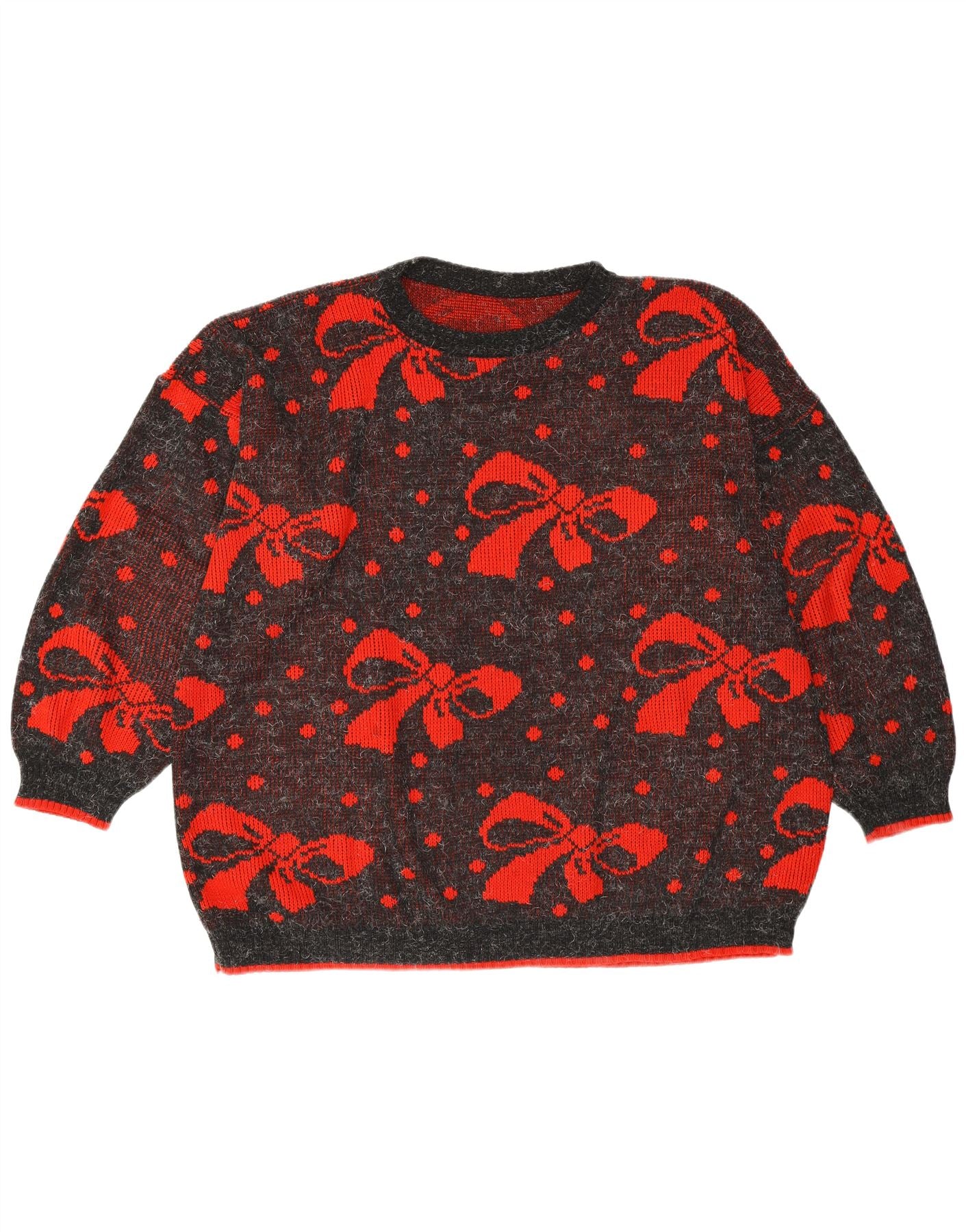 VINTAGE Suéter de cuello redondo de gran tamaño para mujer Reino Unido 22 3XL Lunares grises