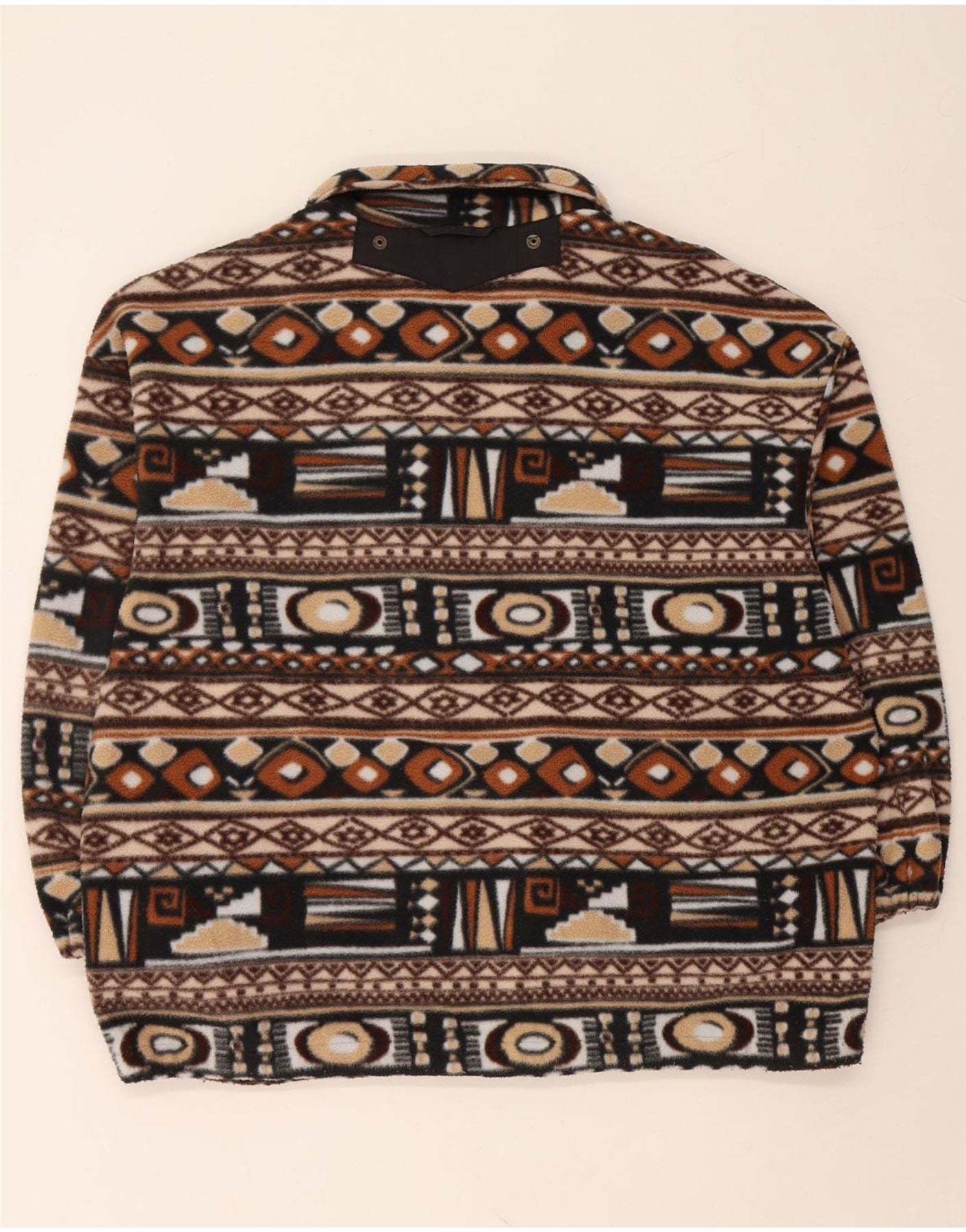 VINTAGE Chaqueta polar de gran tamaño para mujer Reino Unido 14 Marrón medio Fair Isle