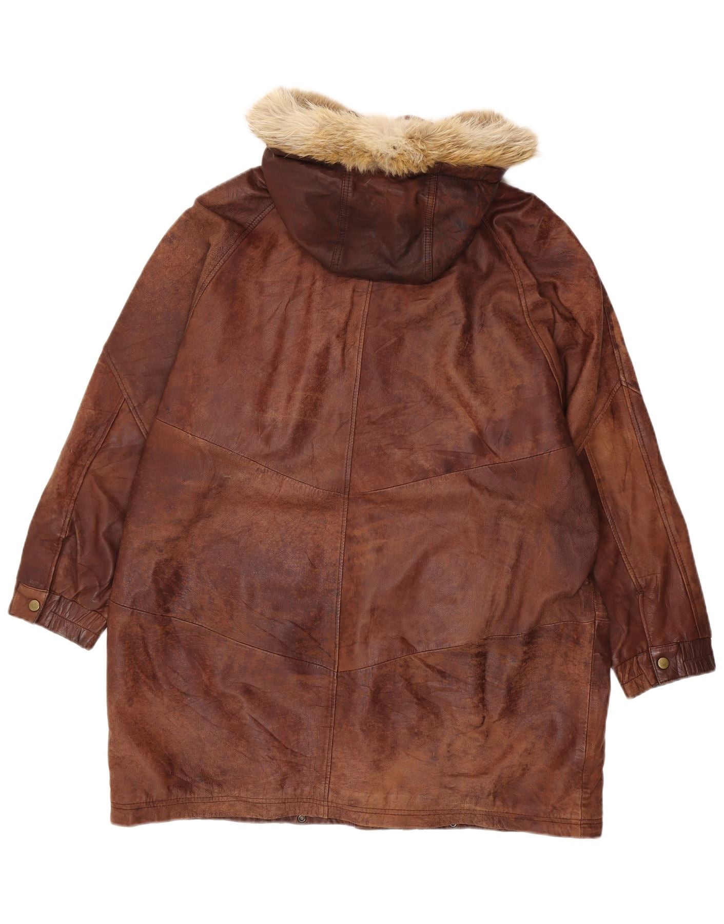 VINTAGE Abrigo de cuero con capucha de gran tamaño para mujer EU 44 XL Cuero marrón