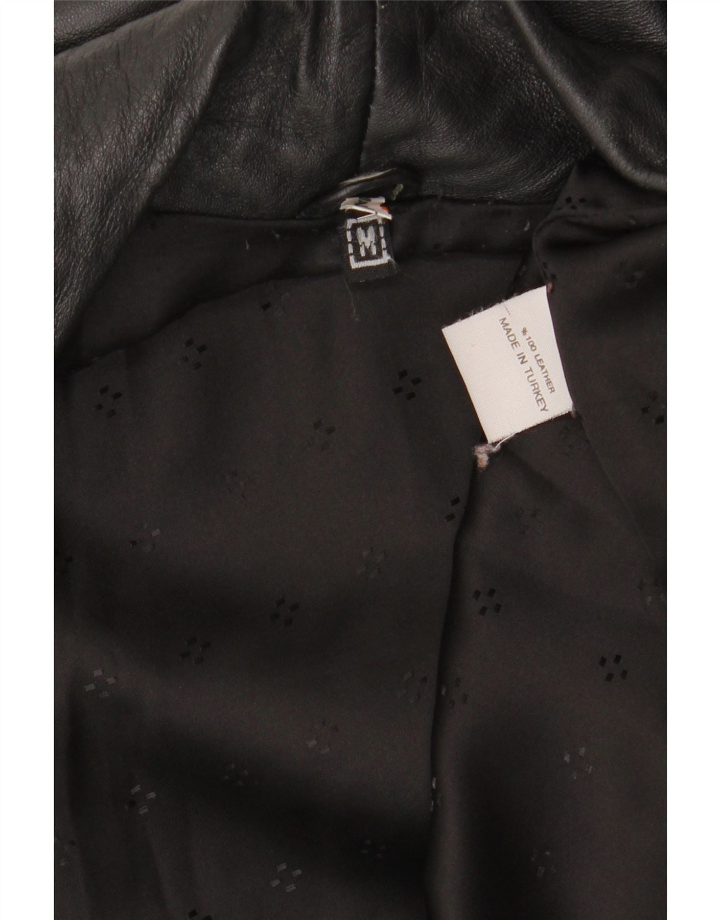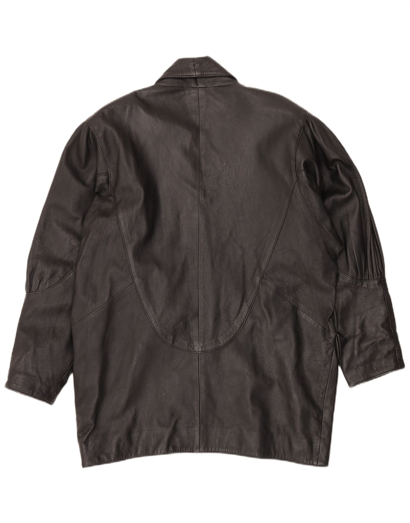 VINTAGE Abrigo de cuero de gran tamaño para mujer Reino Unido 14 Cuero negro mediano