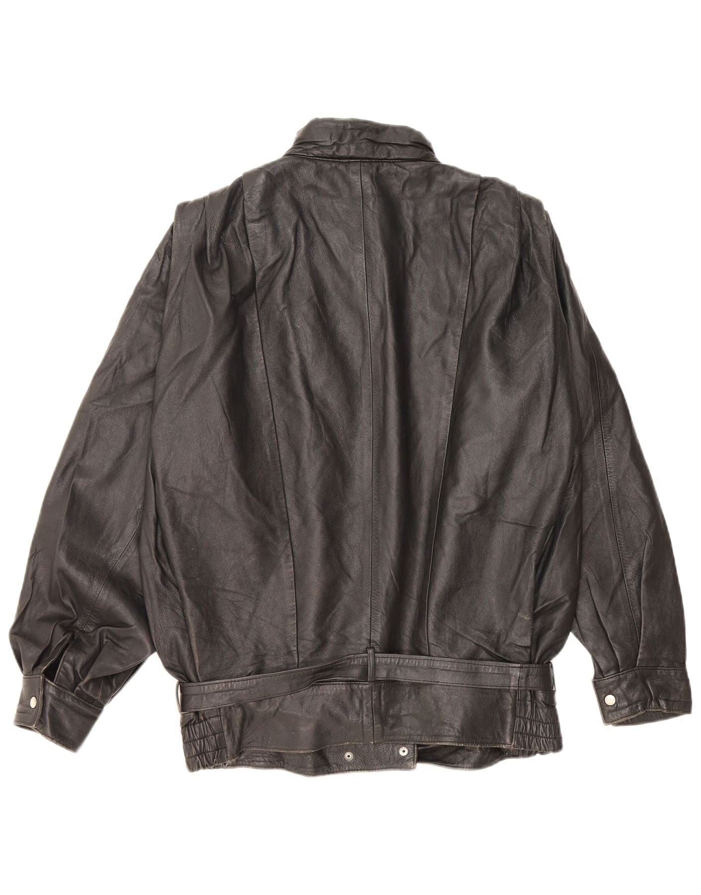 VINTAGE Abrigo de cuero de gran tamaño para mujer Reino Unido 10 Pequeño estampado animal negro
