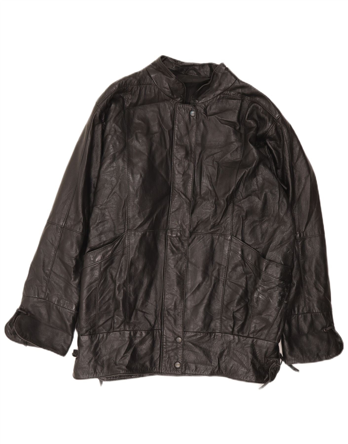 Vintage mujer chaqueta de cuero de gran tamaño EU 50 XL negro