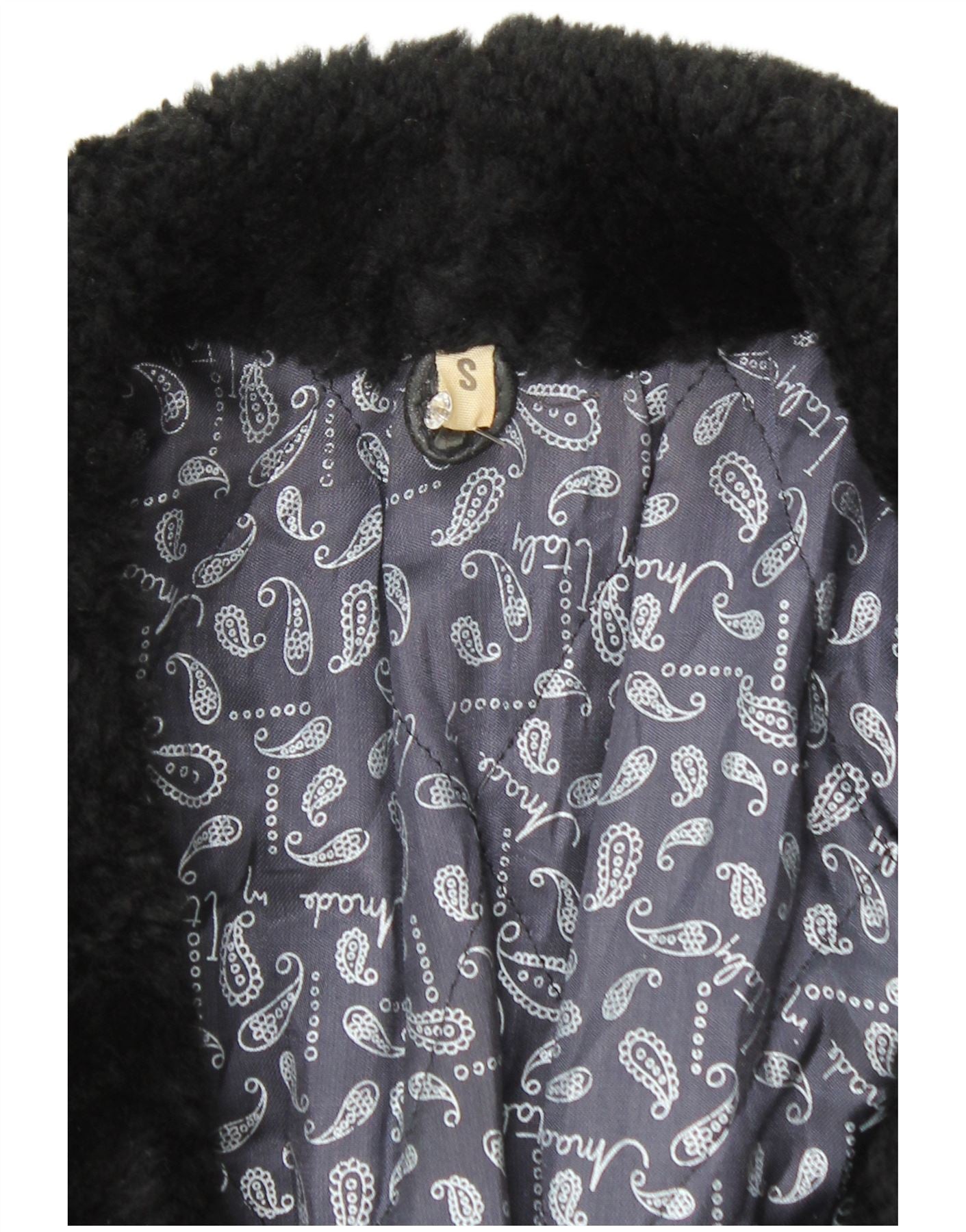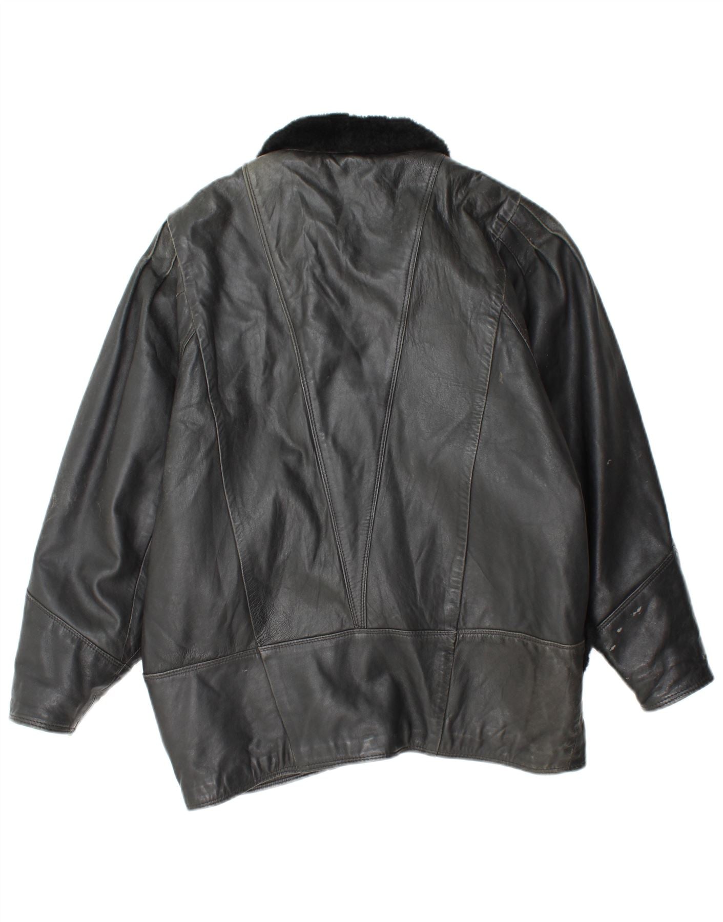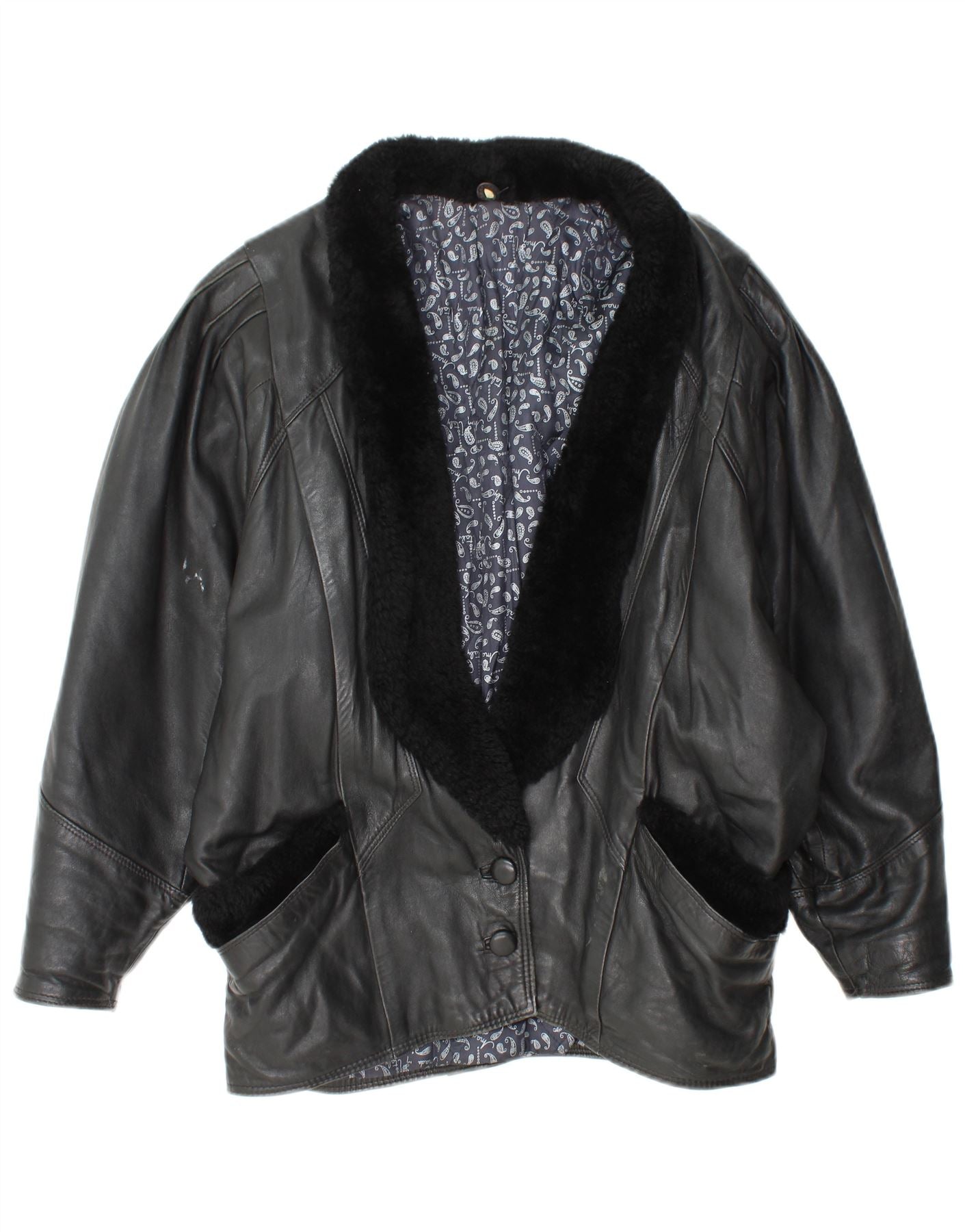 VINTAGE Chaqueta de cuero de gran tamaño para mujer Reino Unido 10 Cuero negro pequeño