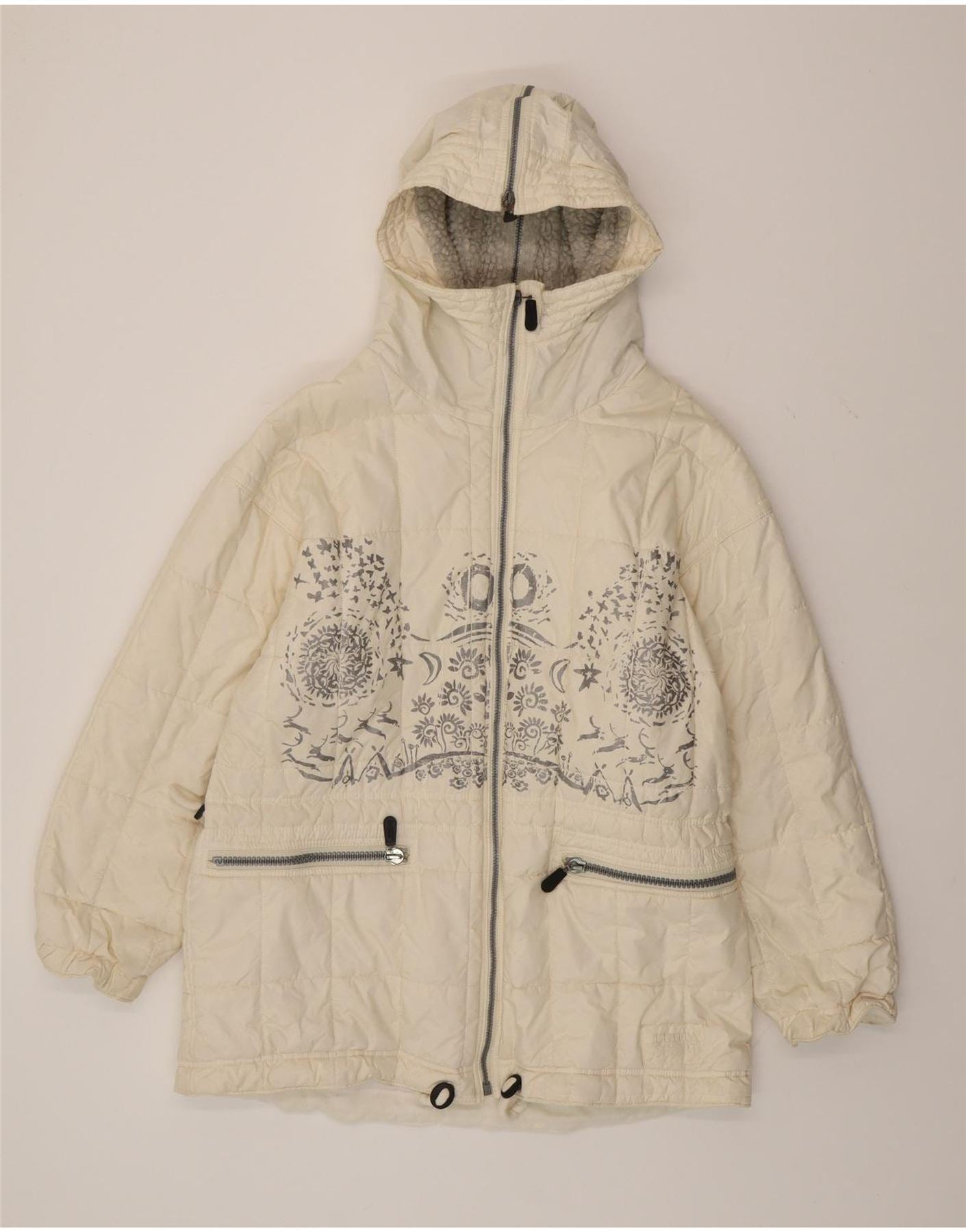 Vintage mujer oversize acolchado abrigo Reino Unido 10 pequeño blanco Paisley poliéster