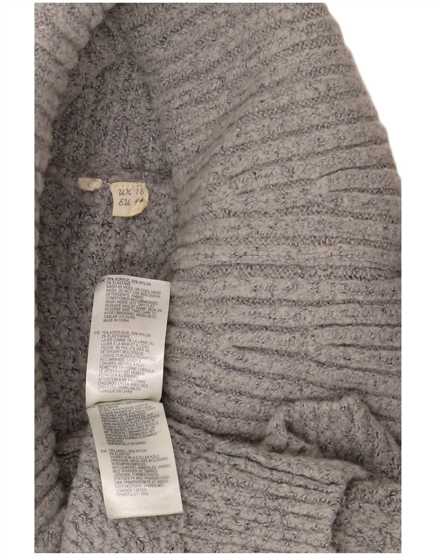 VINTAGE Mujer Oversize Roll Neck Jumper Suéter Reino Unido 16 Gris Grande