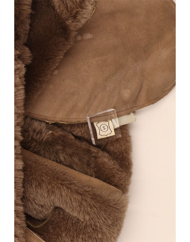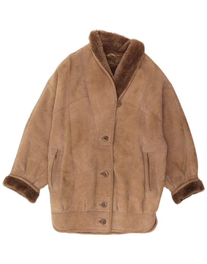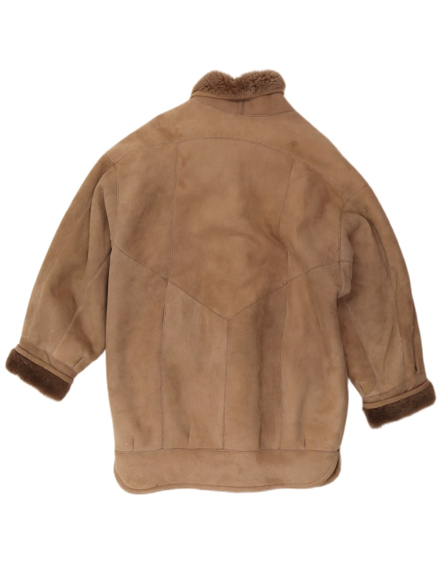 VINTAGE Abrigo de piel de gran tamaño para mujer Reino Unido 10 Cuero beige pequeño