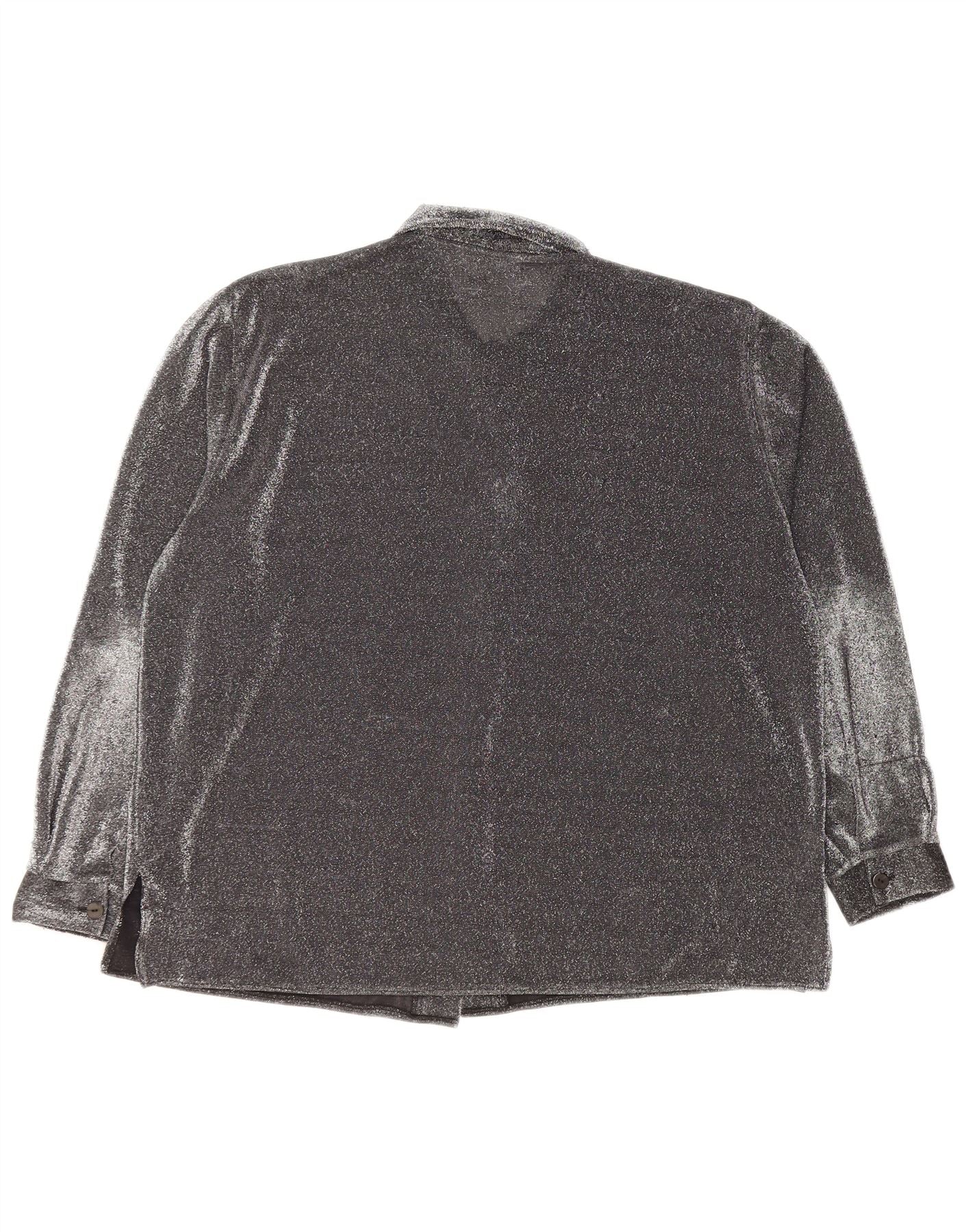 VINTAGE Blusa de terciopelo de manga larga para mujer Top UK 20 2XL Negro