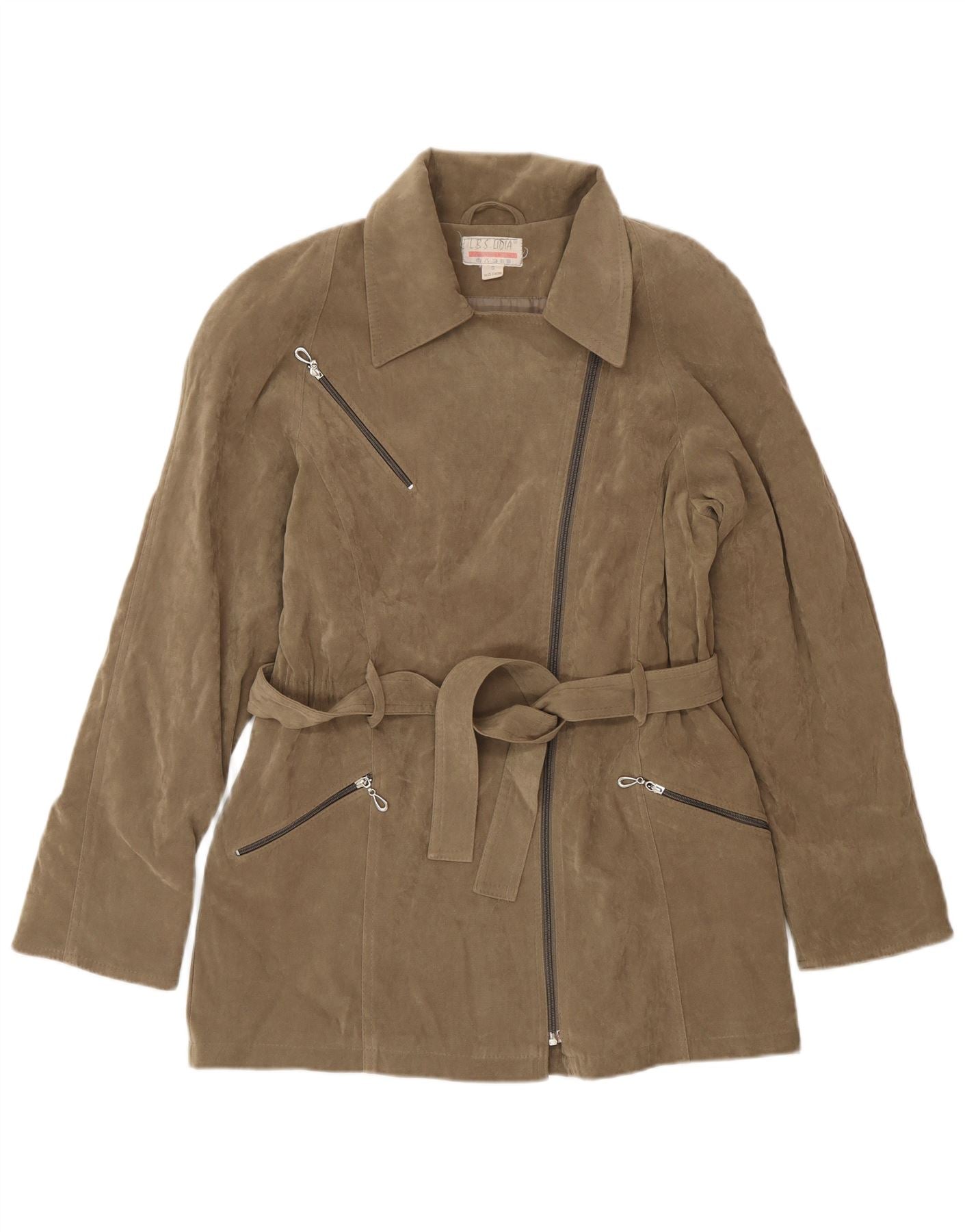 - Descripción de IA: Esta chaqueta motera Vintage para mujer está confeccionada con suave moleskin de color caqui y ofrece una sensación de lujo. Presenta un cierre de cremallera asimétrico y un escote de cuello clásico. Las mangas largas y el corte regular garantizan una comodidad de uso. La cintura con cinturón ciñe la silueta y añade definición. Los múltiples bolsillos con cremallera brindan detalles prácticos y un toque elegante.