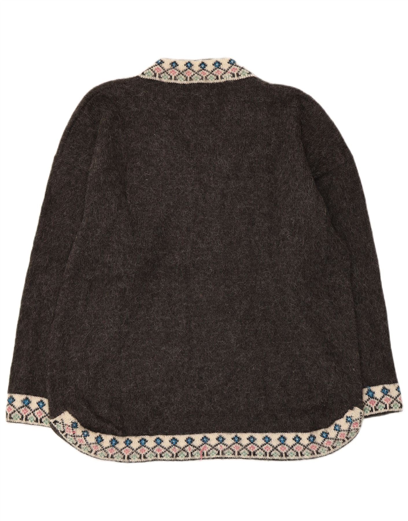VINTAGE Suéter de jersey con cuello en V de gran tamaño para mujer Reino Unido 18 XL Gris Fair Isle