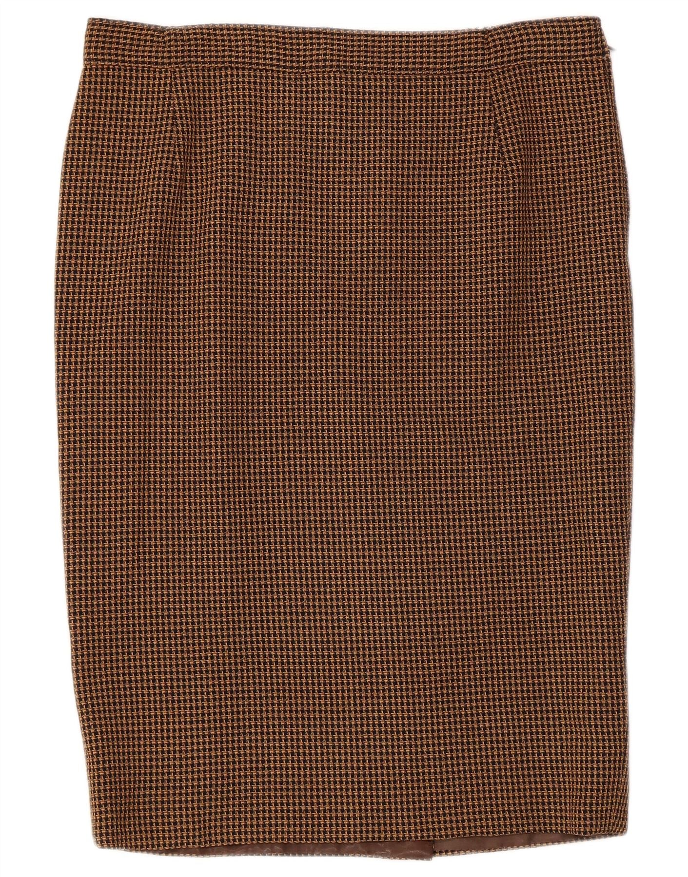 VINTAGE Falda lápiz para mujer W32 Pata de gallo marrón grande