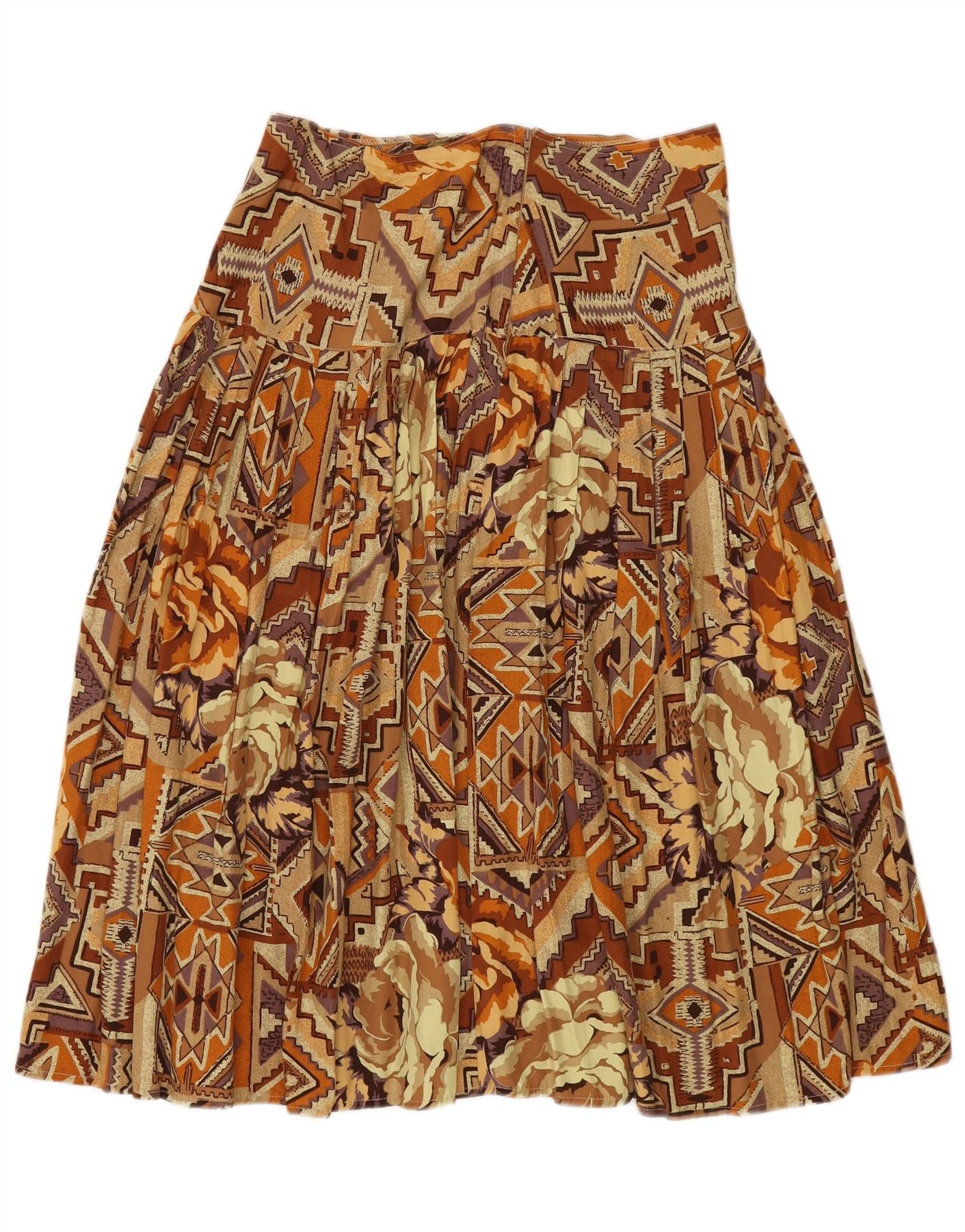 VINTAGE Falda Plisada Mujer Mediana W30 Marrón Patchwork Algodón