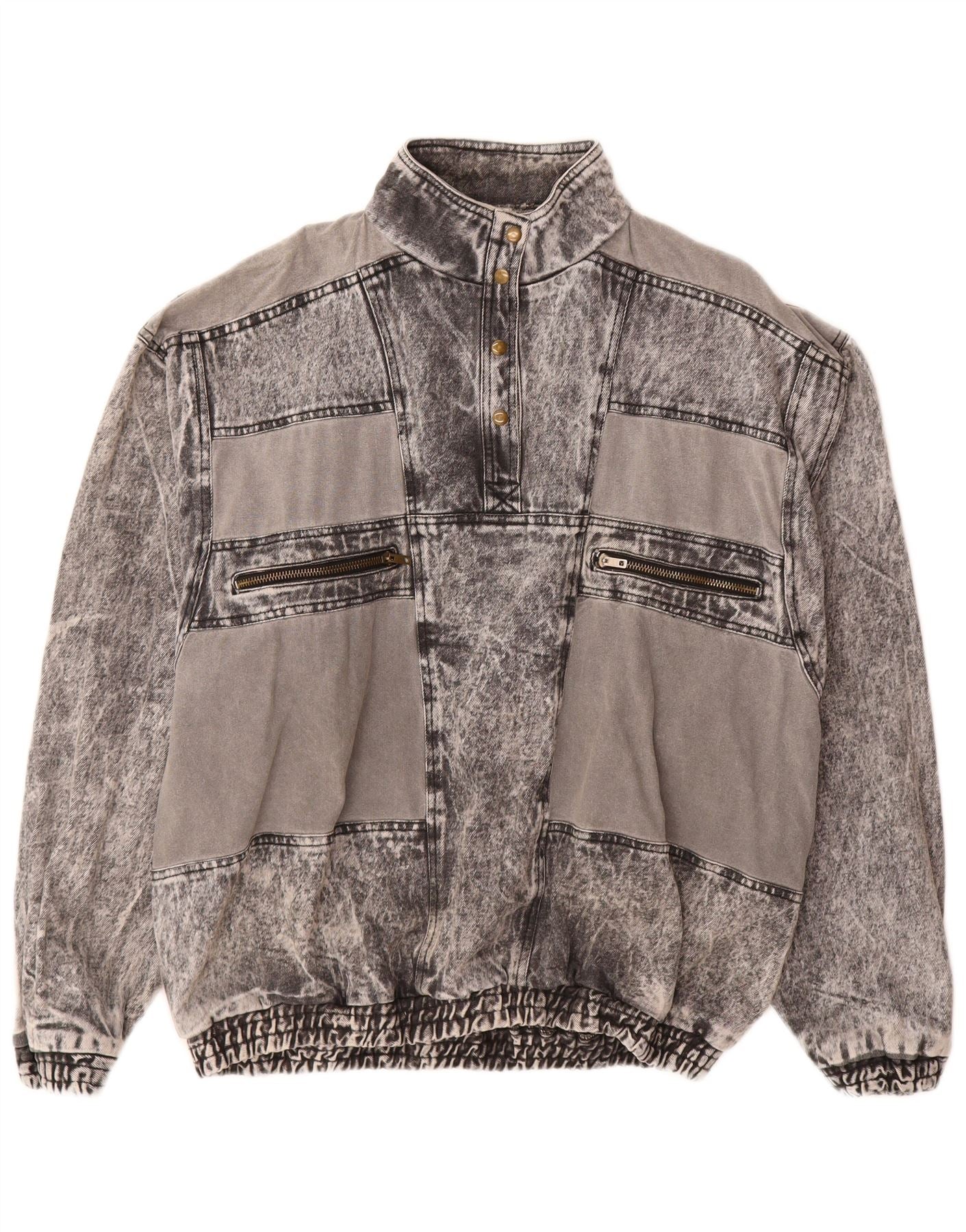 VINTAGE Mujer Jersey Chaqueta Denim Reino Unido 20 2XL Algodón Gris