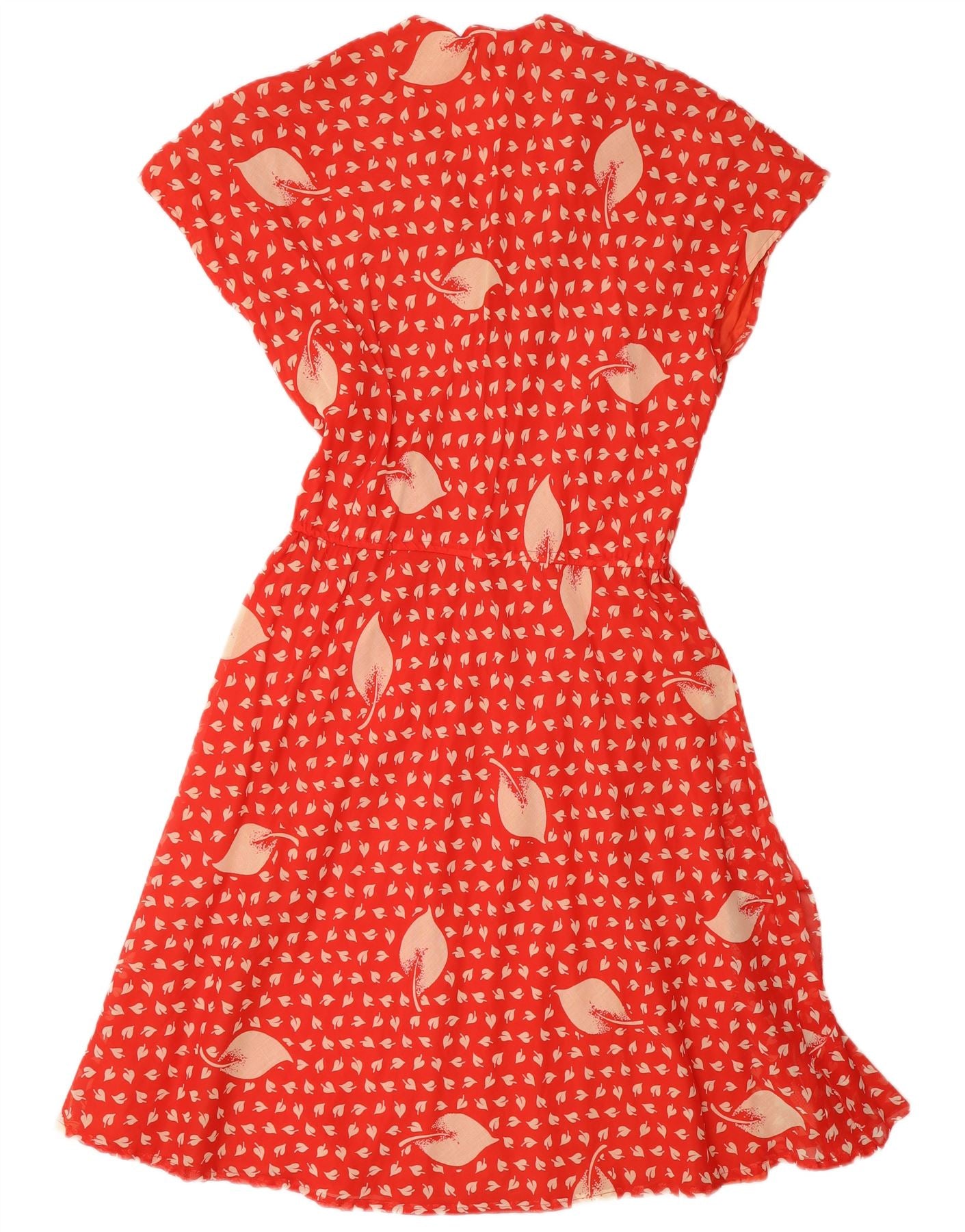 Vintage mujer volante frente una línea vestido ITB 44 medio rojo floral retro