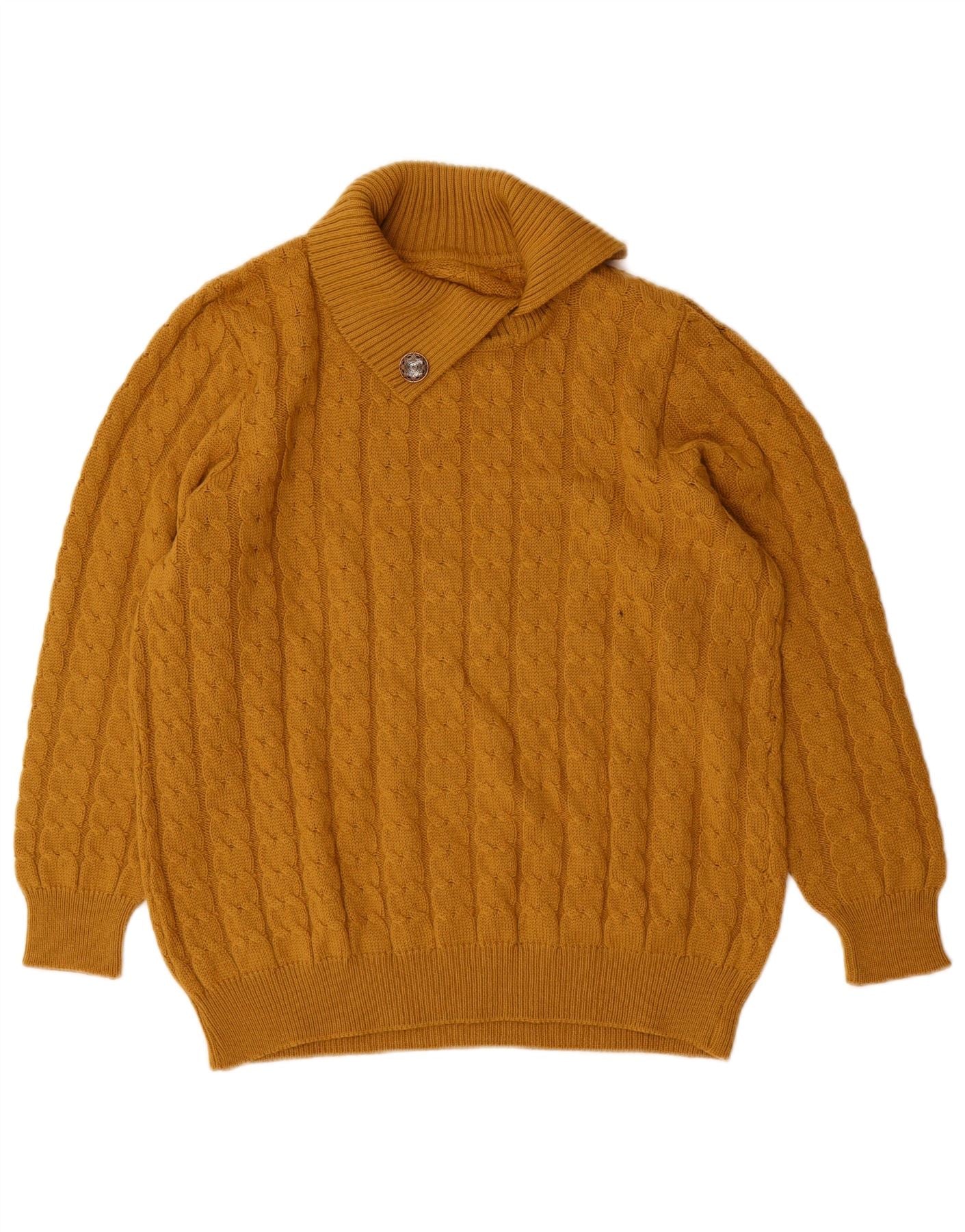 VINTAGE suéter de cuello chal para mujer Reino Unido 16 amarillo grande