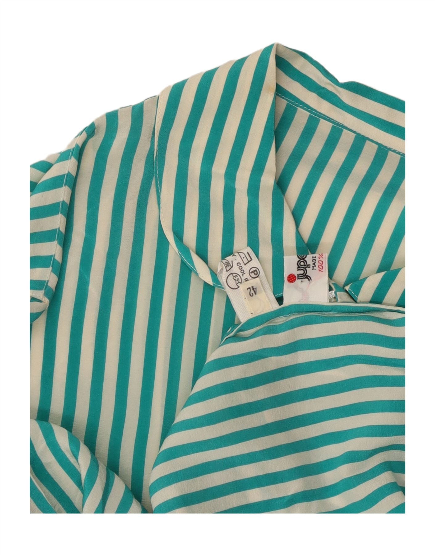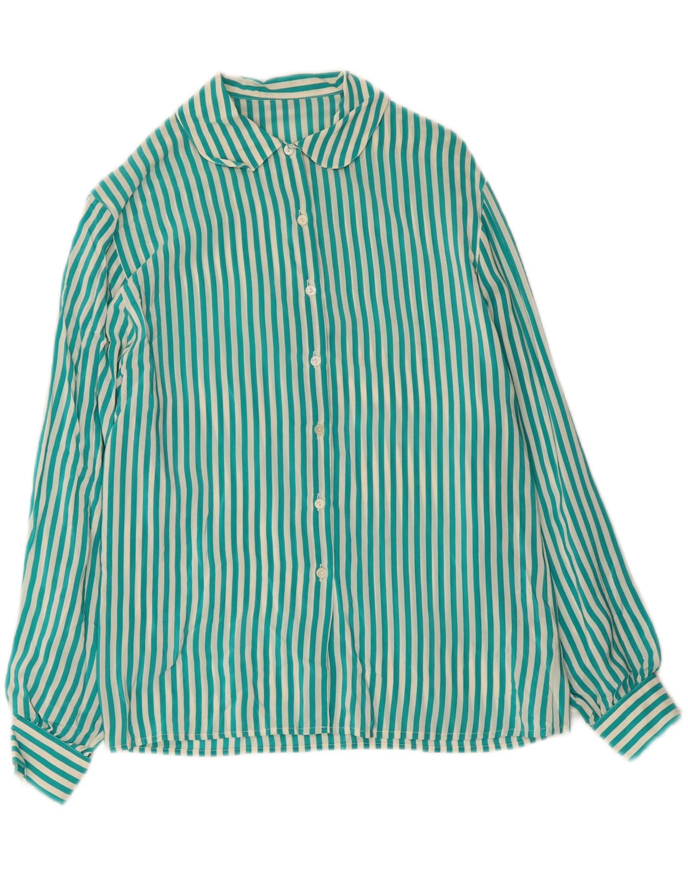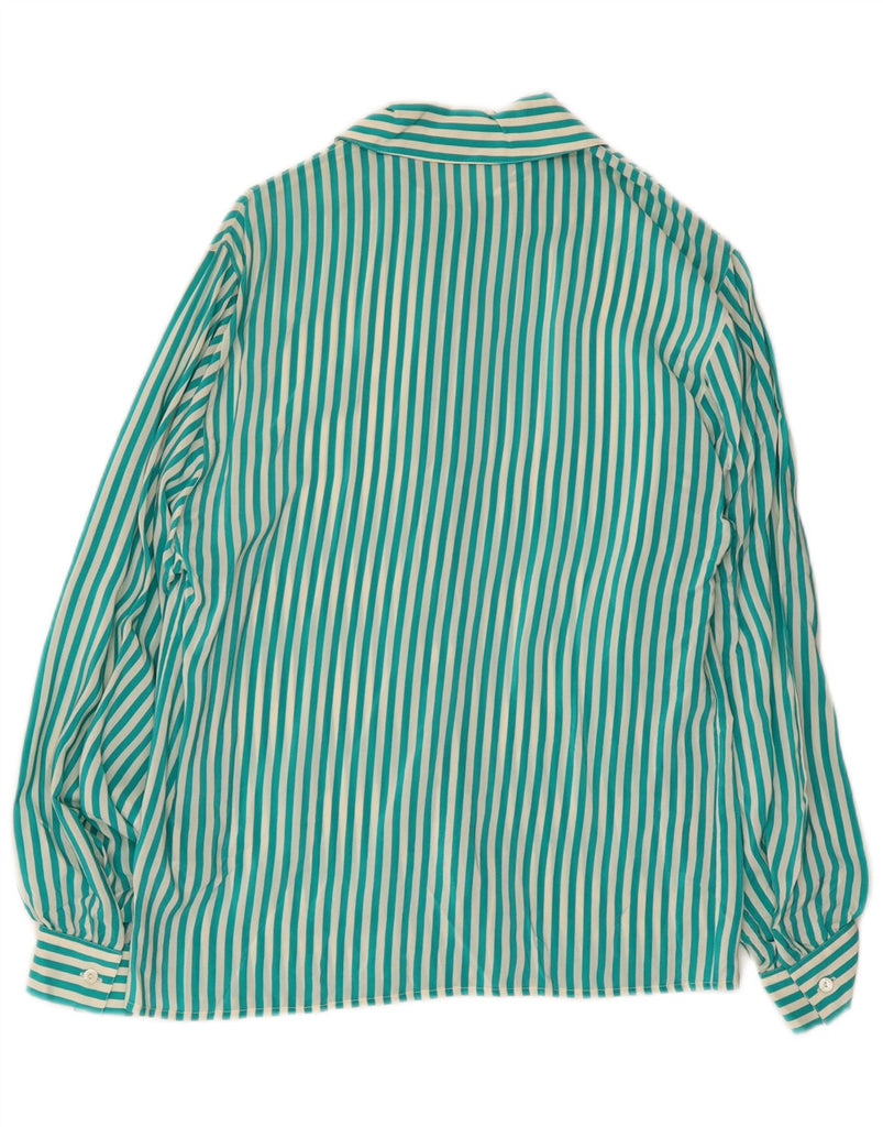 VINTAGE Womens Shirt Blouse IT 42 Medium Green Striped Silk
