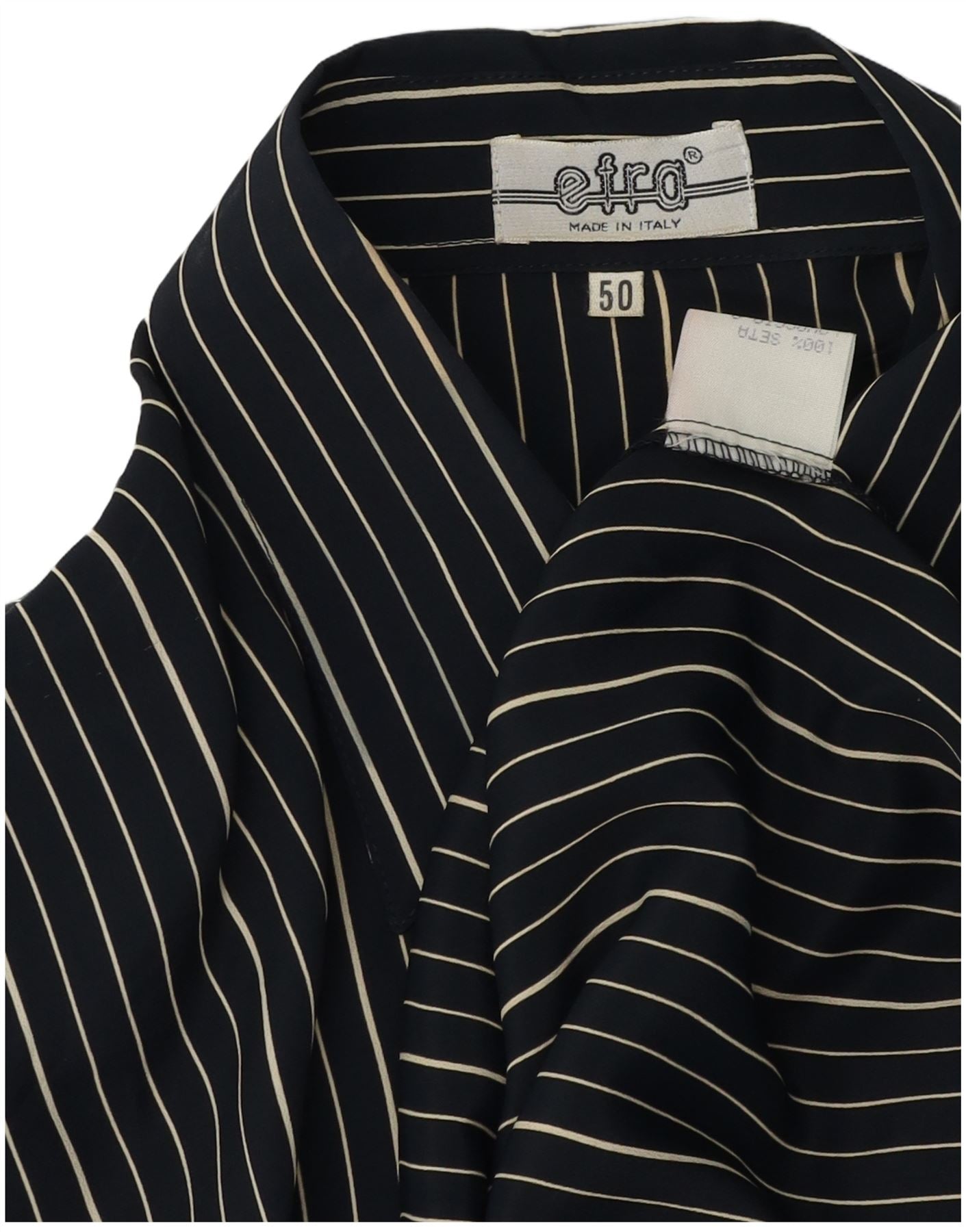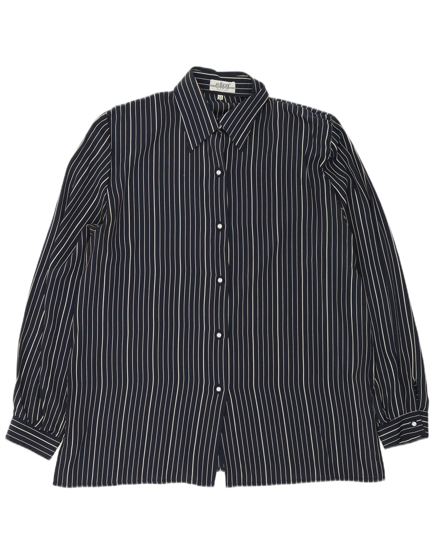 Blusa camisera VINTAGE para mujer IT 50 XL Seda azul marino a rayas