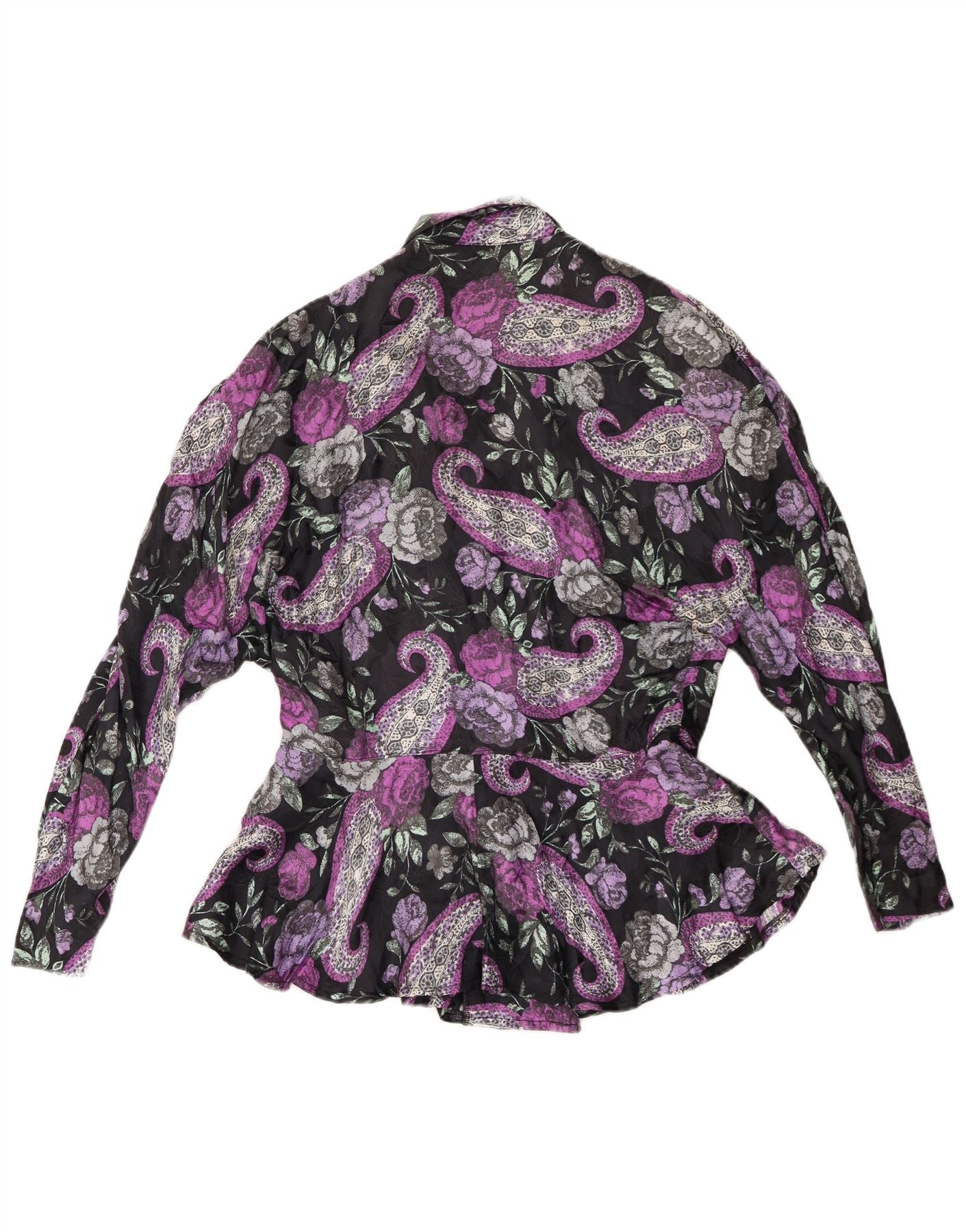 VINTAGE Blusa camisa mujer Reino Unido 16 Grande Púrpura Floral
