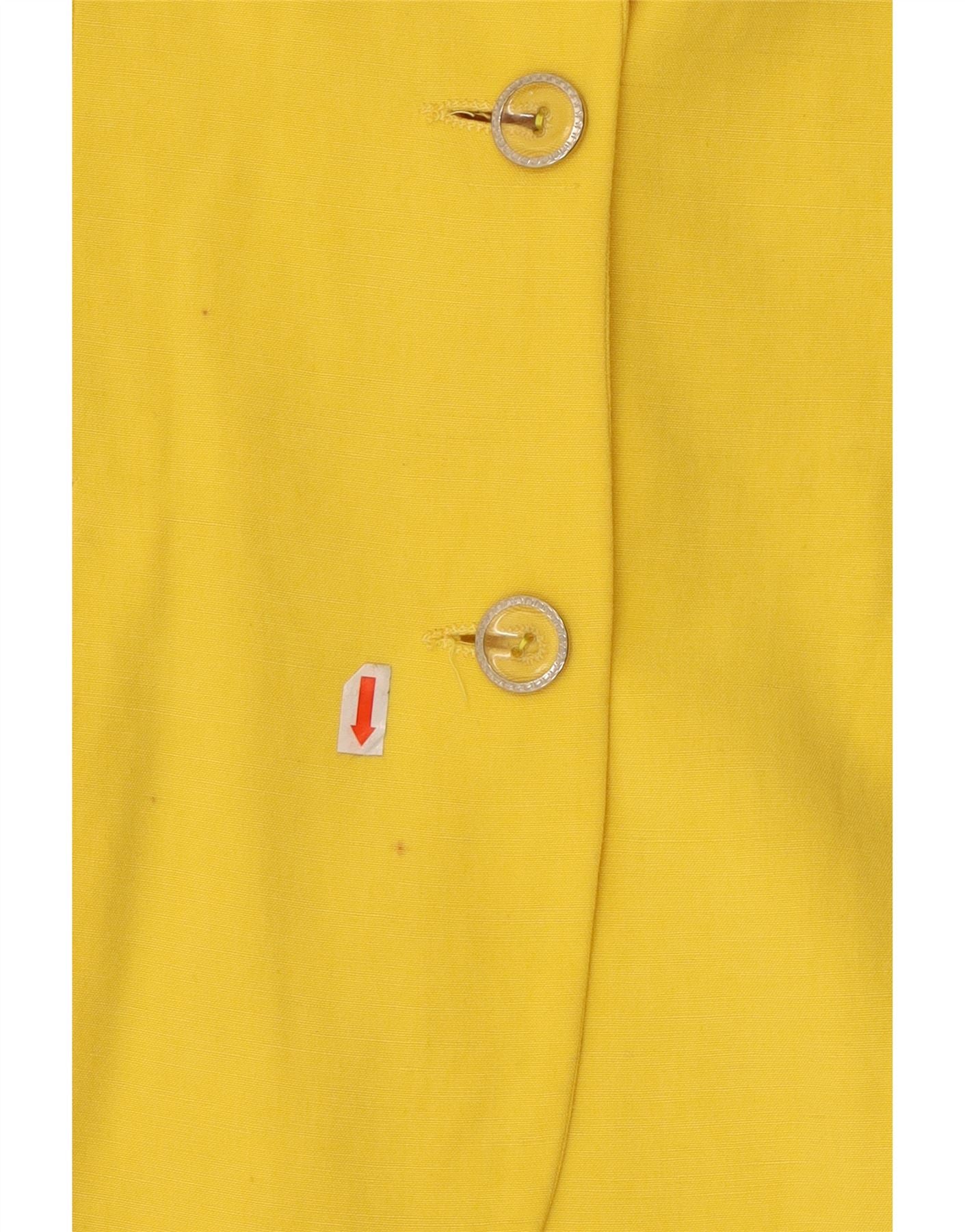 VINTAGE Mujer Manga Corta 2 Botón Blazer Chaqueta Reino Unido 12 Amarillo Medio