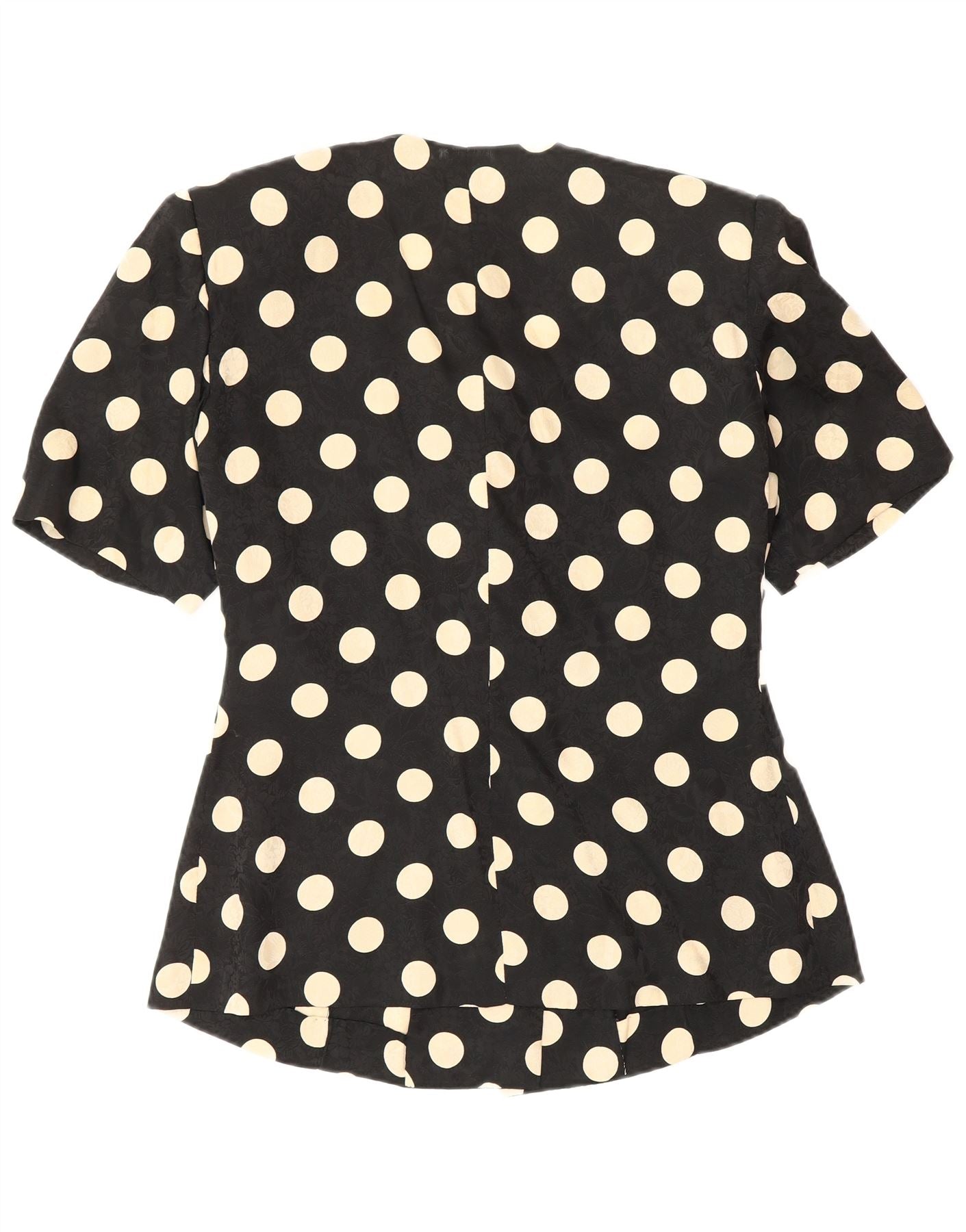 Vintage mujer manga corta 2 piezas falda conjunto Reino Unido 12 mediano W28 negro