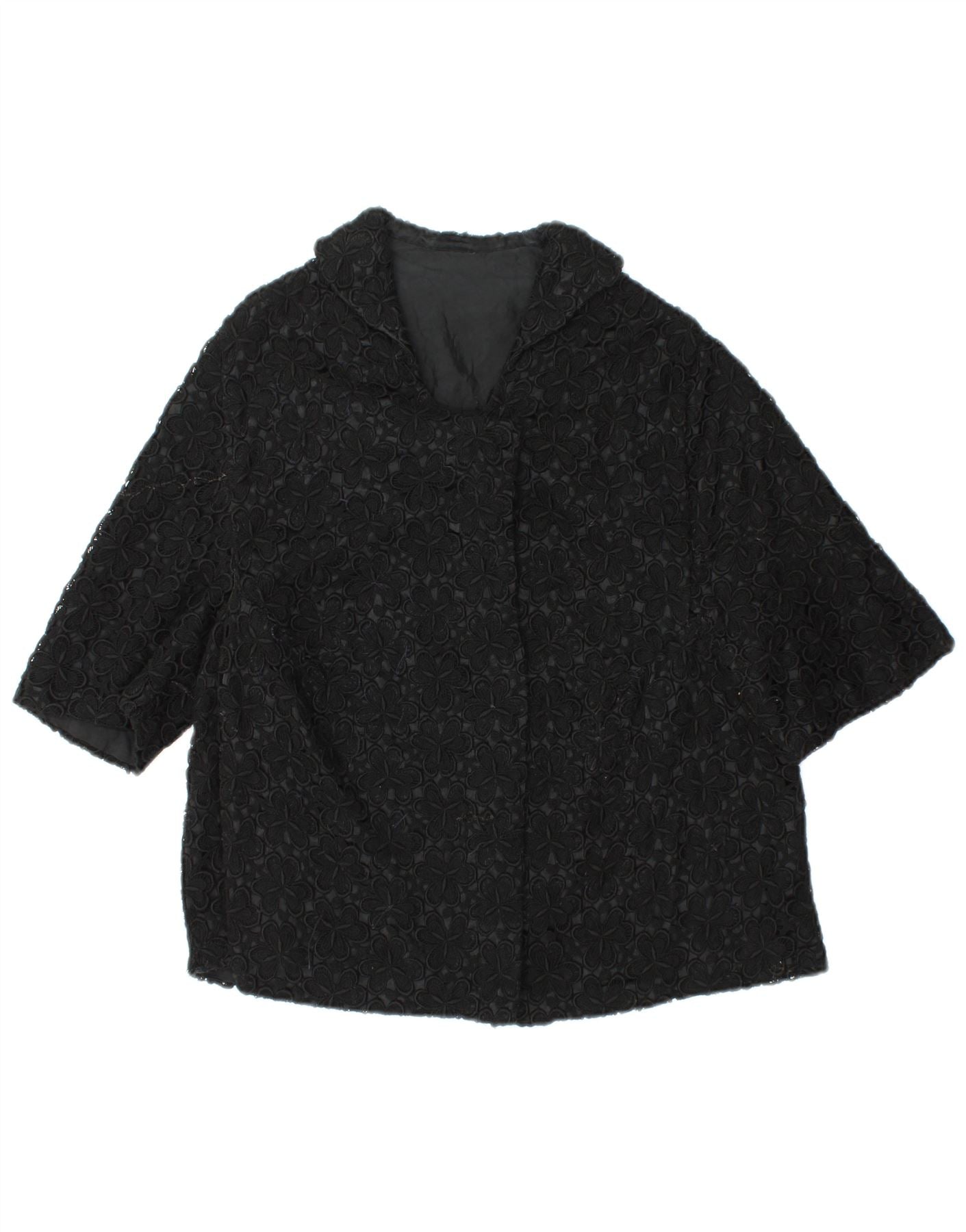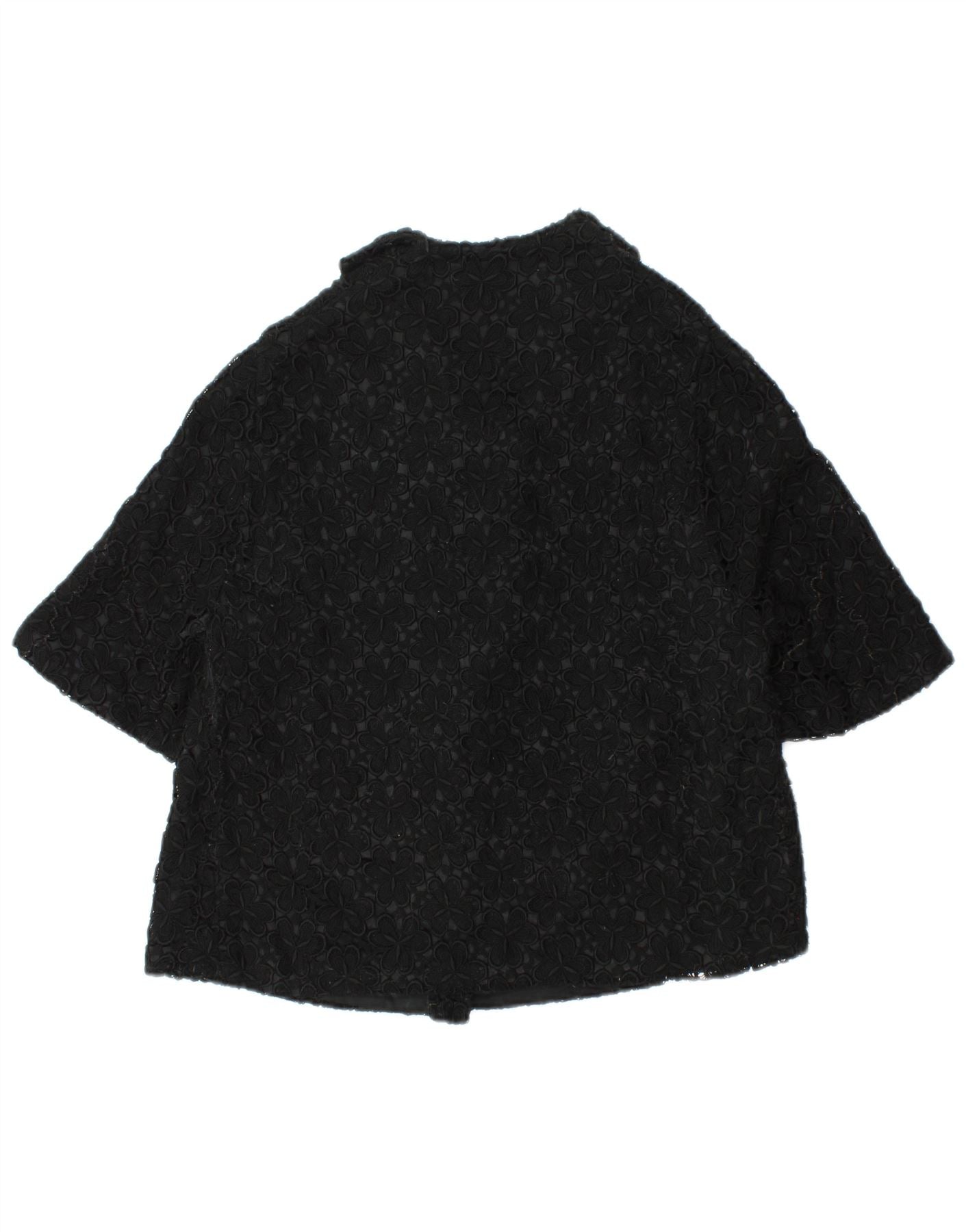 VINTAGE Womens Short Sleeve Blazer Jacket UK 12 Medium Black Floral