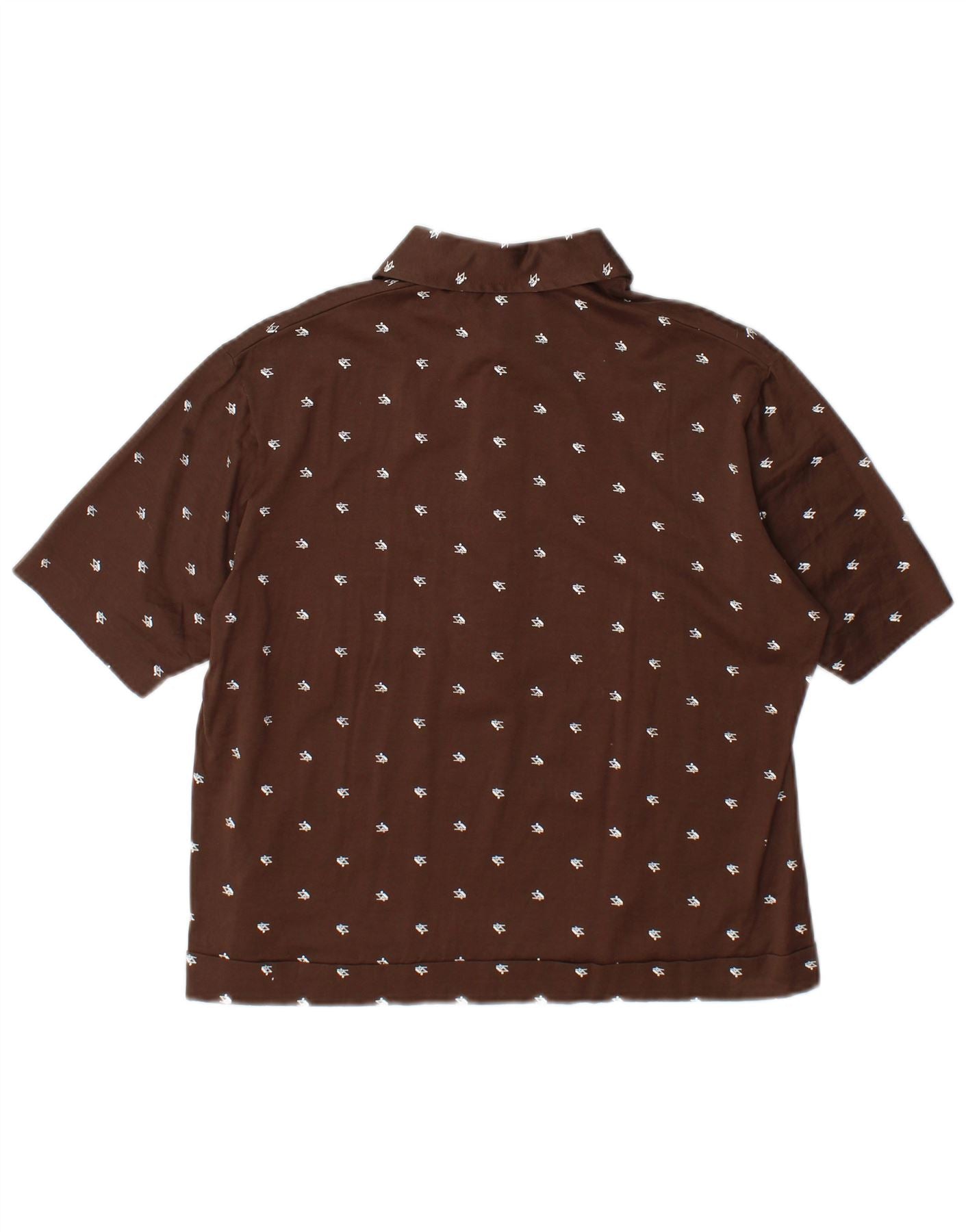 VINTAGE Camisa pullover de manga corta para mujer IT 52 2XL Marrón Geométrico