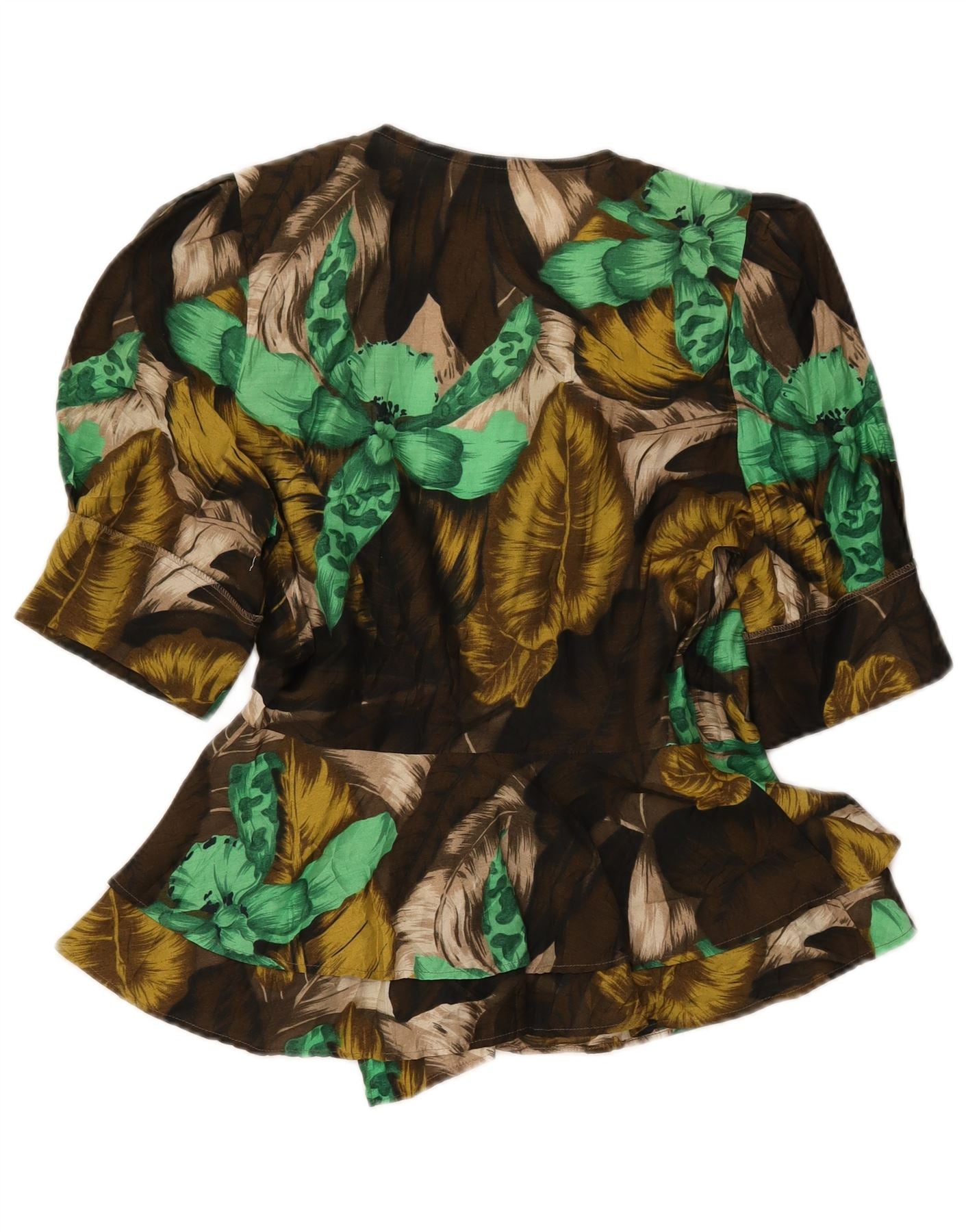 VINTAGE Blusa camisera de manga corta para mujer IT 42 Medium Khaki Floral
