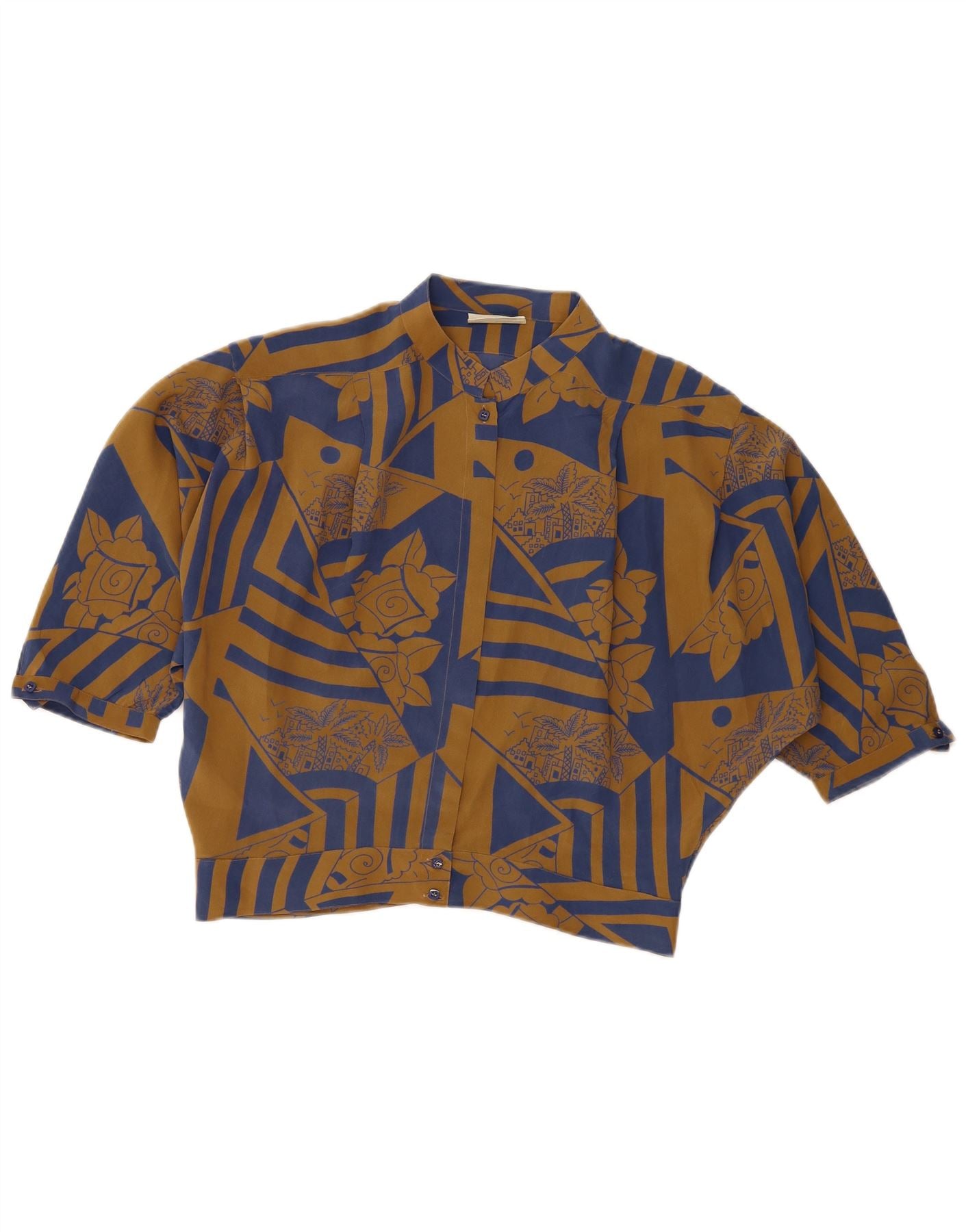VINTAGE Blusa camisa de manga corta para mujer IT 46 Seda floral marrón grande