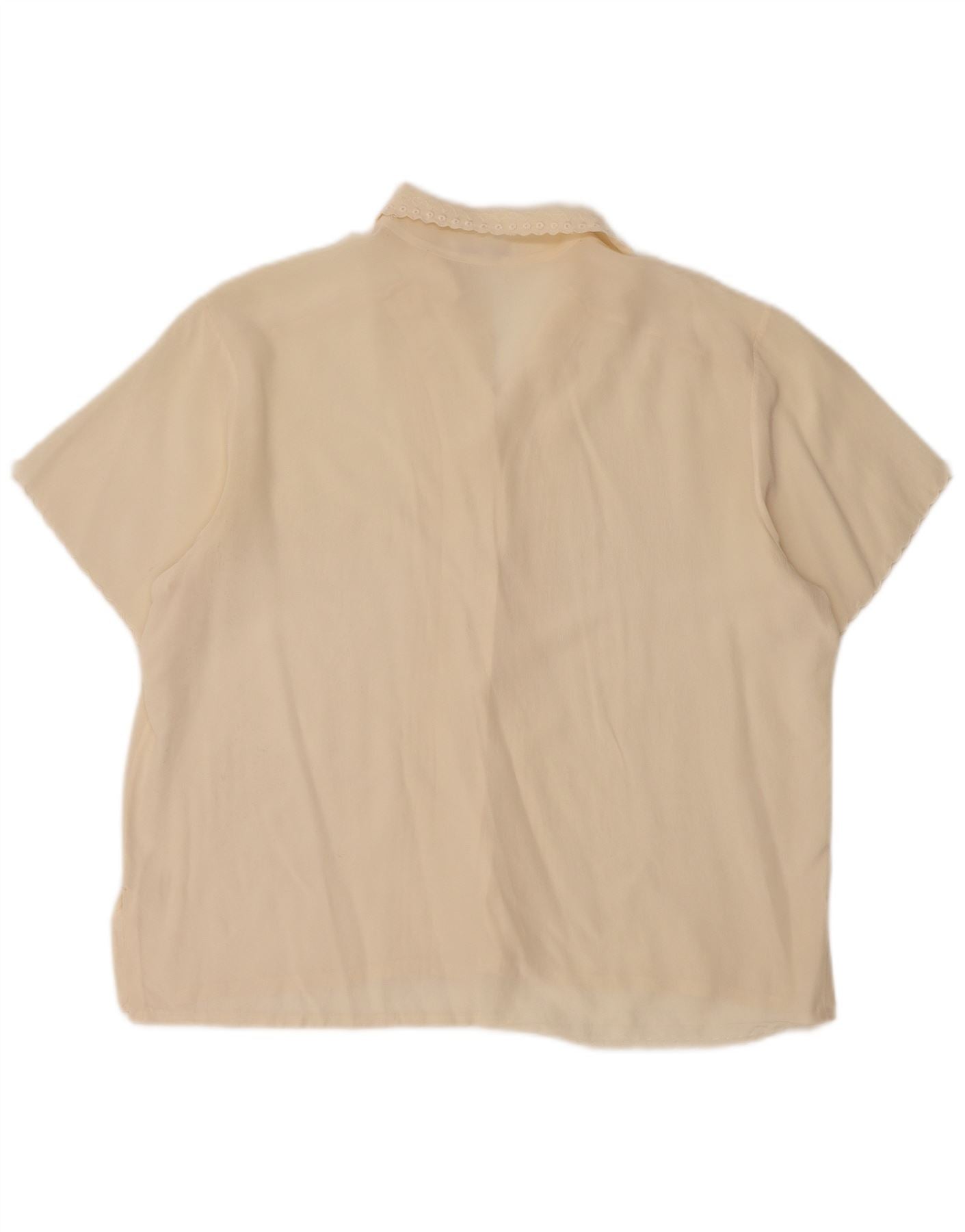 Vintage mujer camisa de manga corta blusa Reino Unido 14 medio de seda blanca