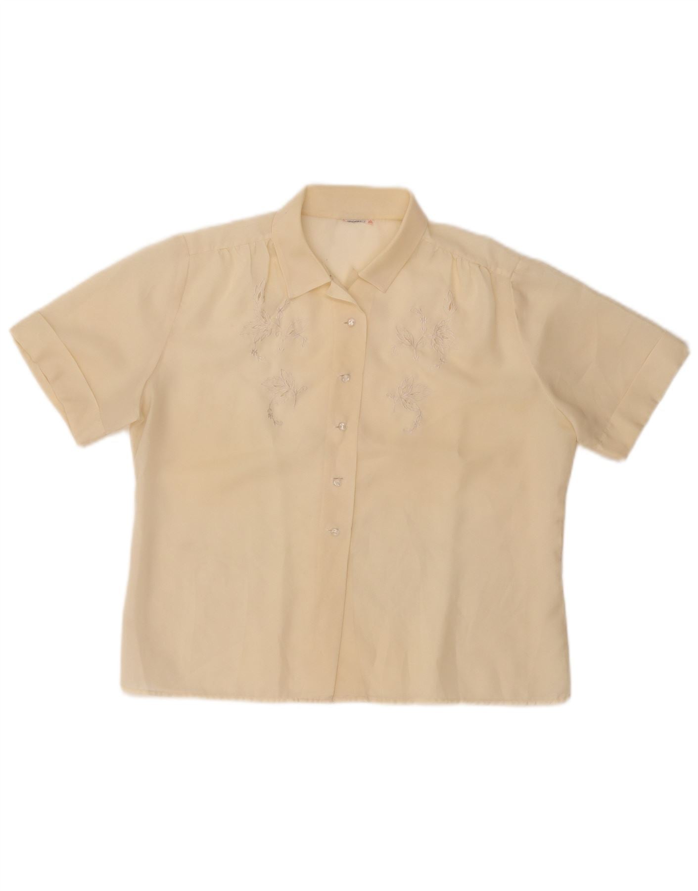 VINTAGE Blusa camisa de manga corta para mujer Reino Unido 14 Floral amarillo medio