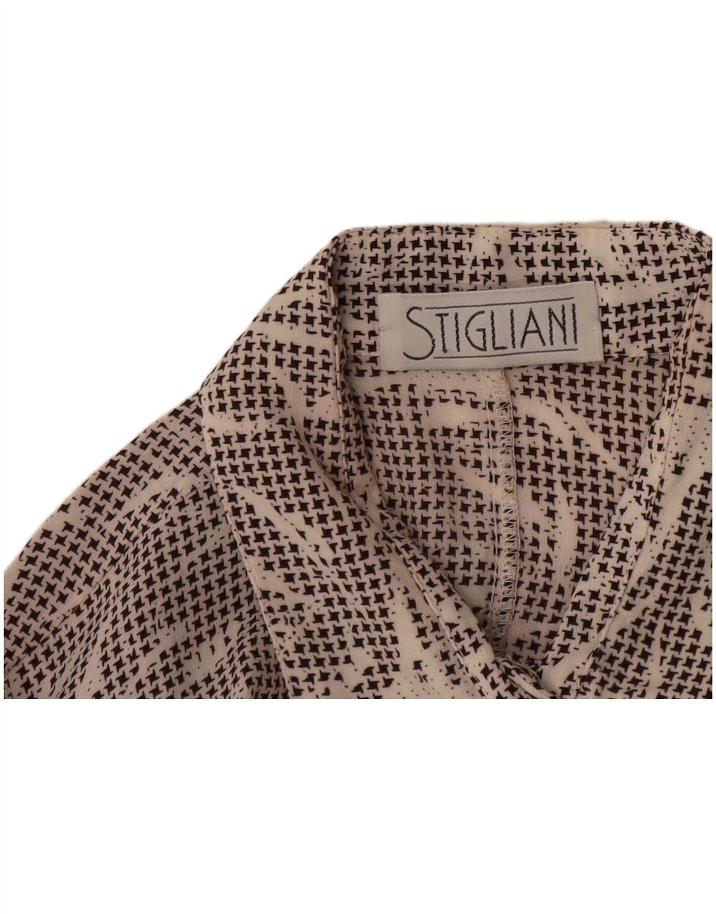 - Descripción de IA: Esta camisa para mujer Stigliani está confeccionada con un tejido ligero en un tono blanquecino. Presenta un llamativo patrón abstracto geométrico en negro. El escote con cuello y la parte delantera abotonada ofrecen un toque clásico. Las mangas cortas y el ajuste relajado garantizan un uso cómodo. Esta pieza combina el estilo retro con la facilidad moderna.