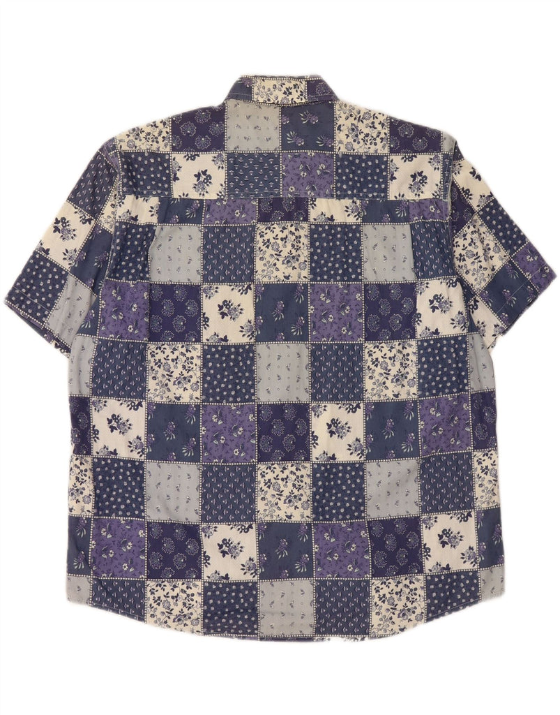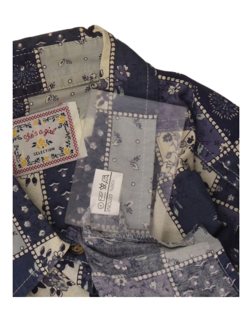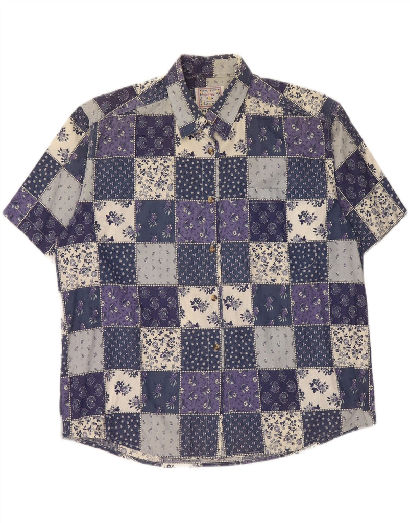 VINTAGE Camisa de manga corta para mujer Reino Unido 20 2XL Algodón patchwork azul