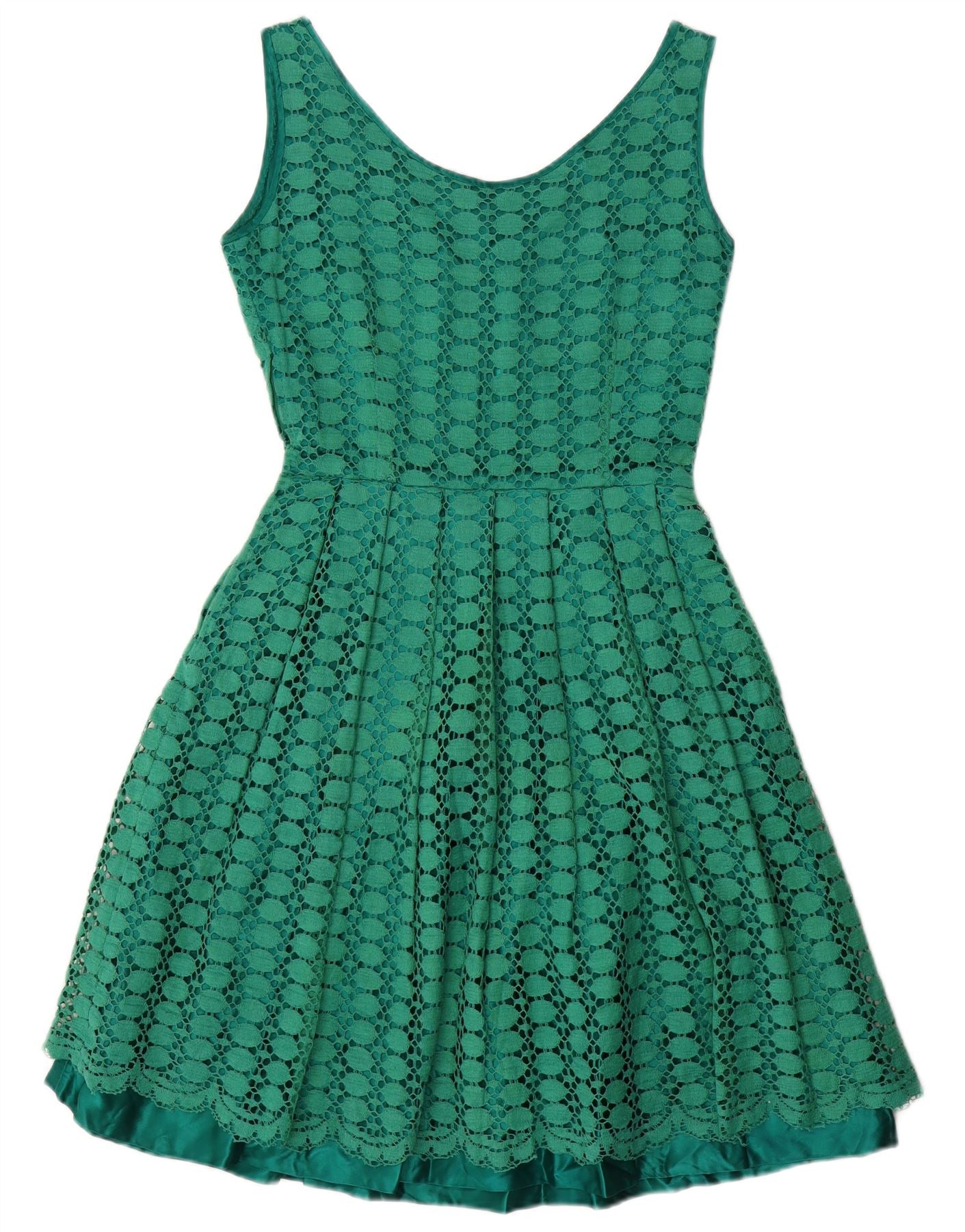 VINTAGE Vestido de línea A sin mangas para mujer Reino Unido 10 Pequeño Verde