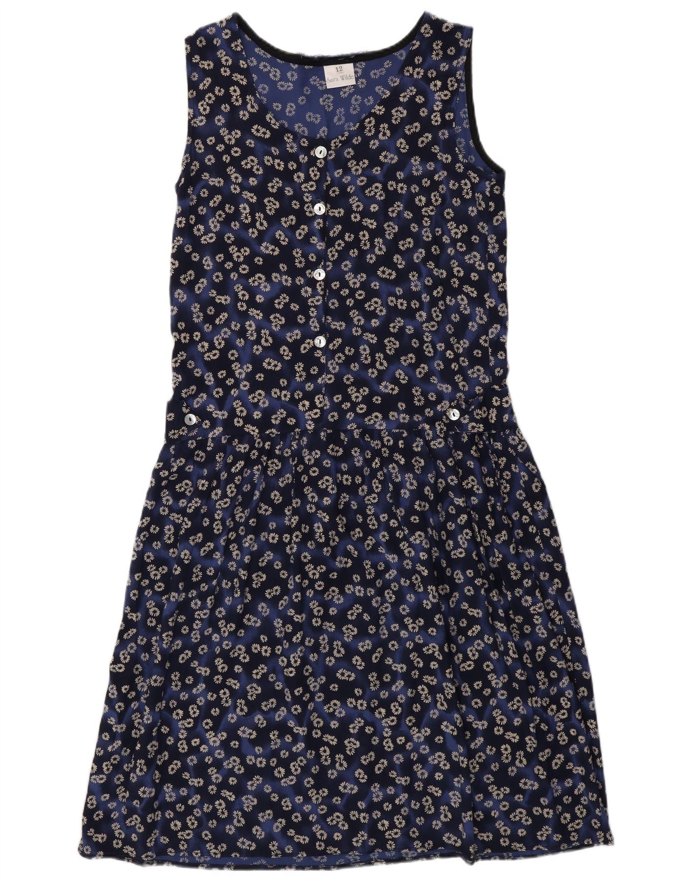 VINTAGE Vestido básico sin mangas para mujer Reino Unido 12 Viscosa floral azul medio