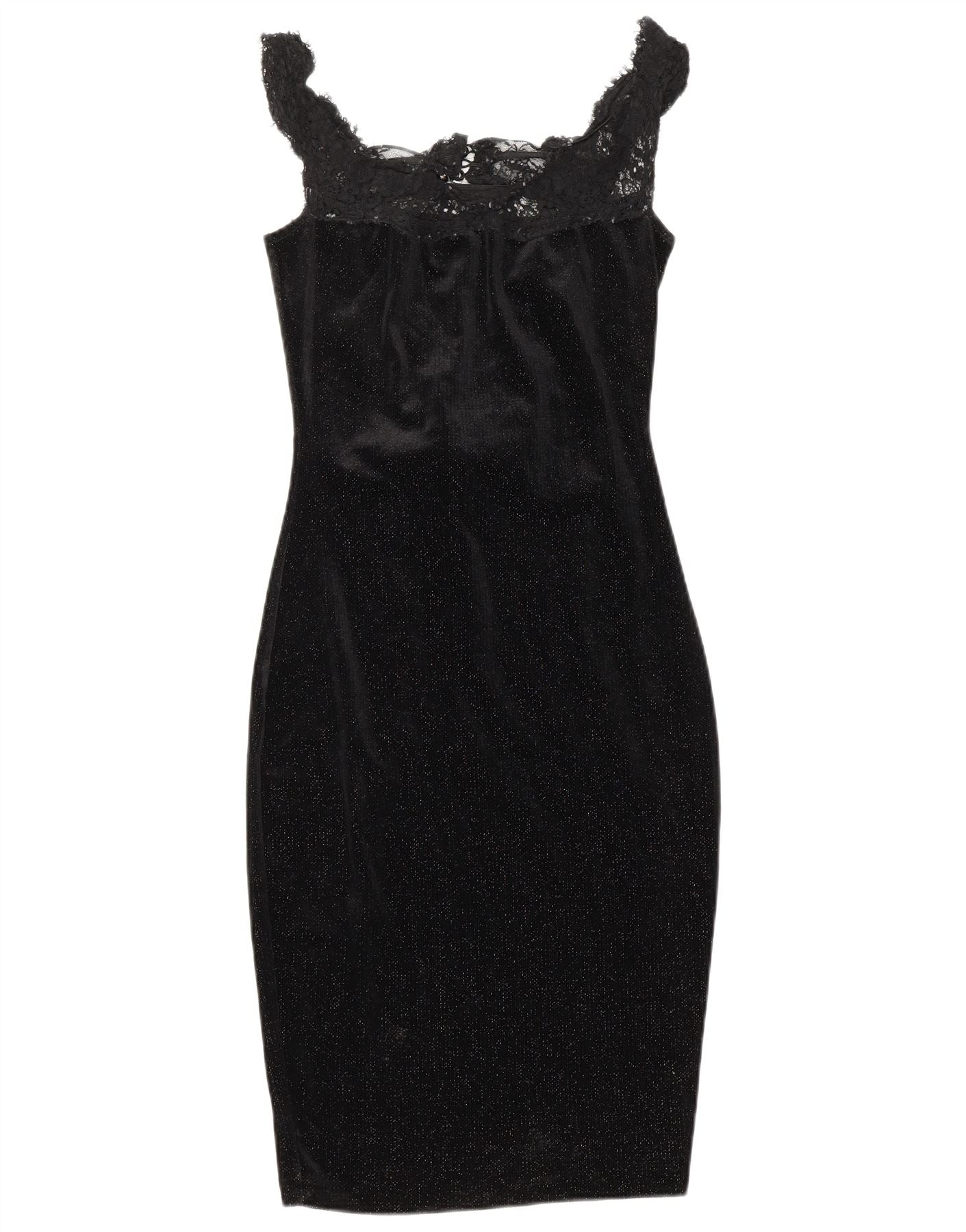 VINTAGE Vestido bodycon sin mangas para mujer Reino Unido 4 XS Negro moteado