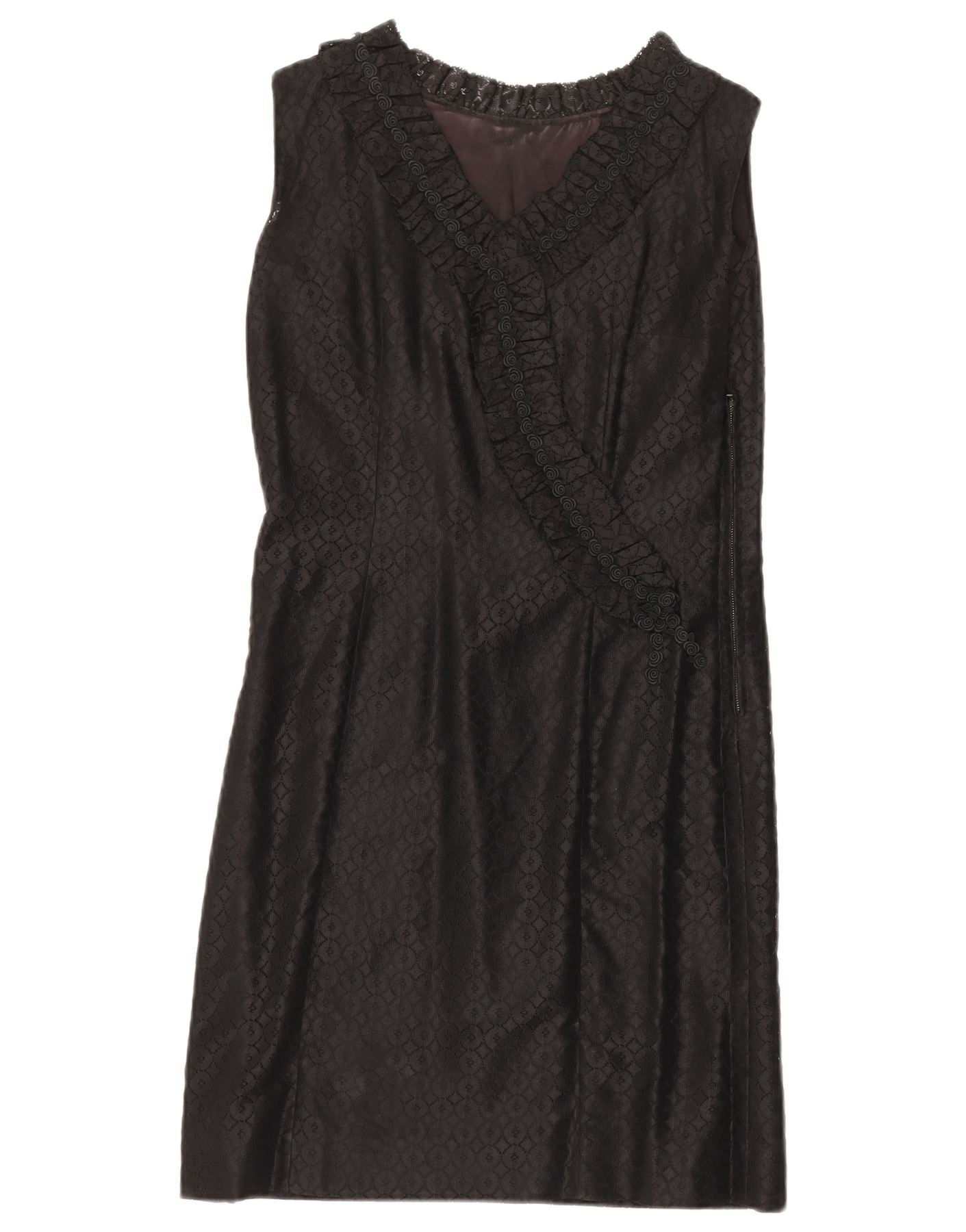 VINTAGE Vestido de cambio de encaje sin mangas para mujer Reino Unido 12 Floral negro medio