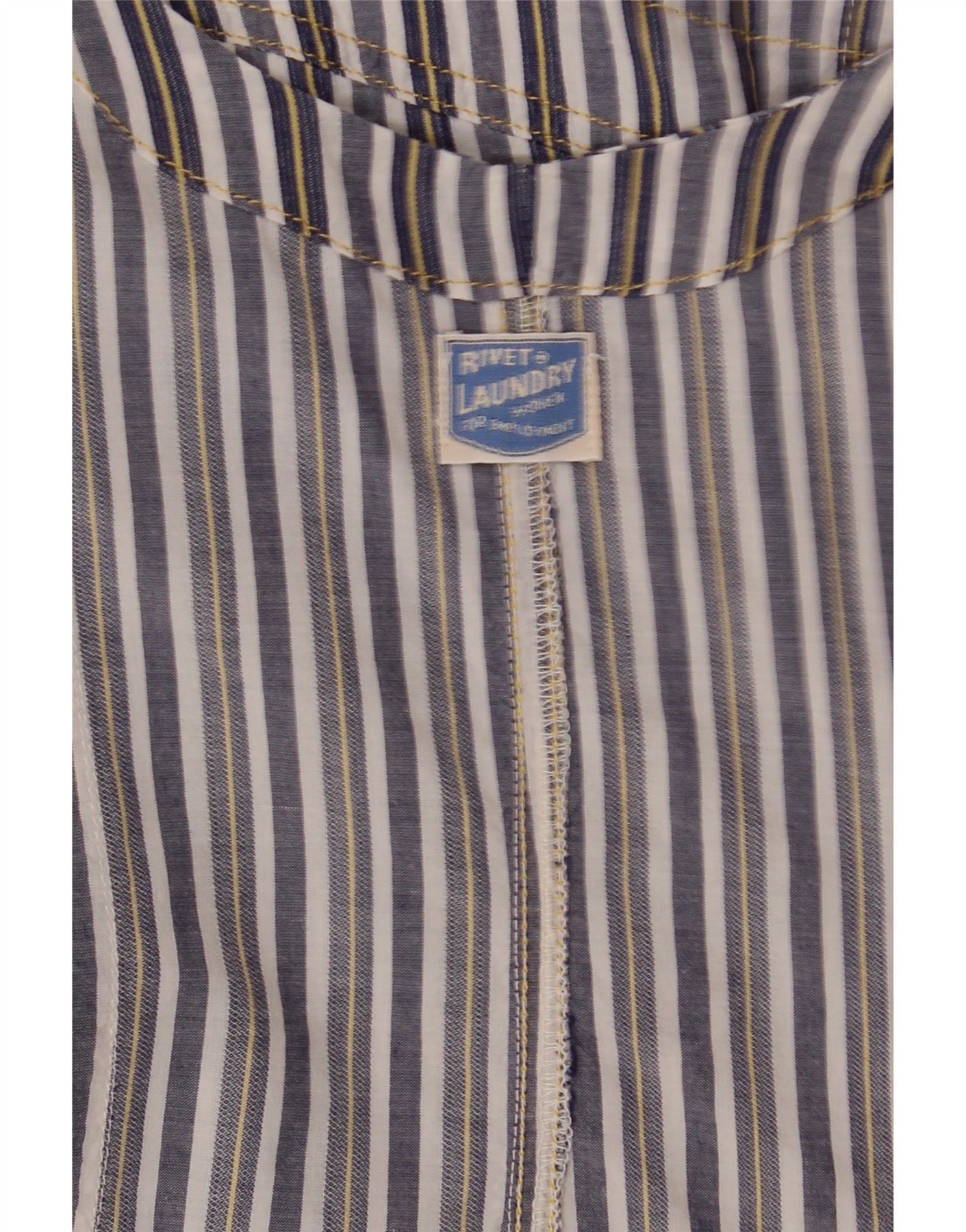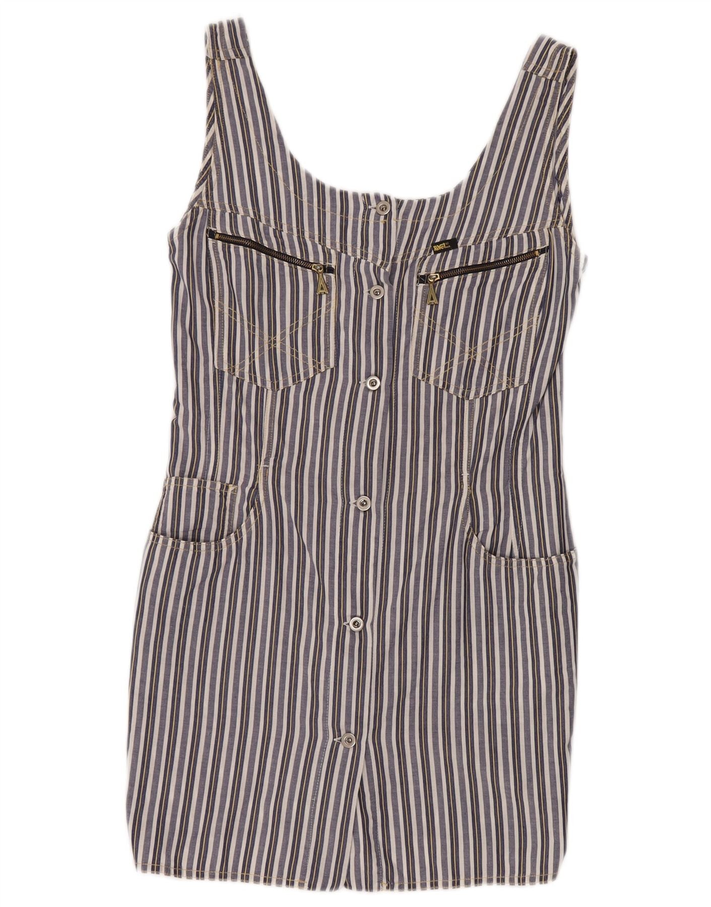 VINTAGE Vestido de vaina sin mangas para mujer Reino Unido 8 Pequeño azul marino a rayas