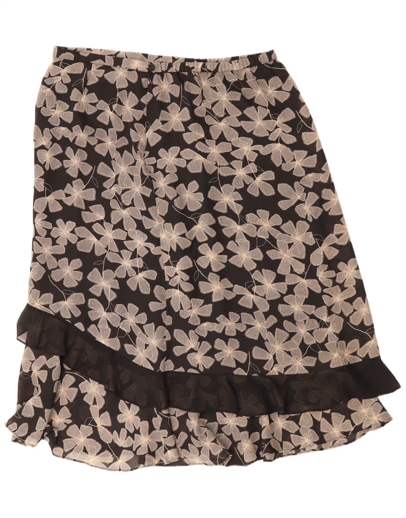 Falda recta vintage para mujer Reino Unido 22 3XL W40 Poliéster floral negro