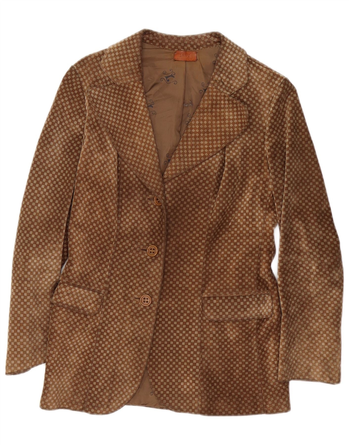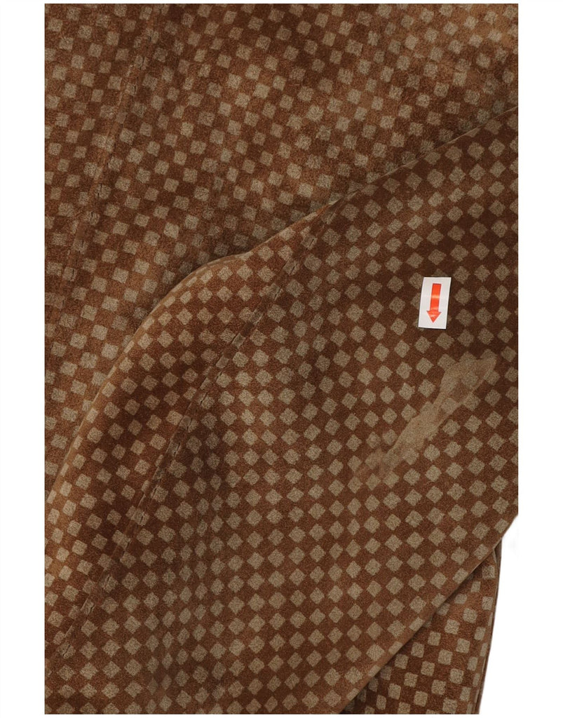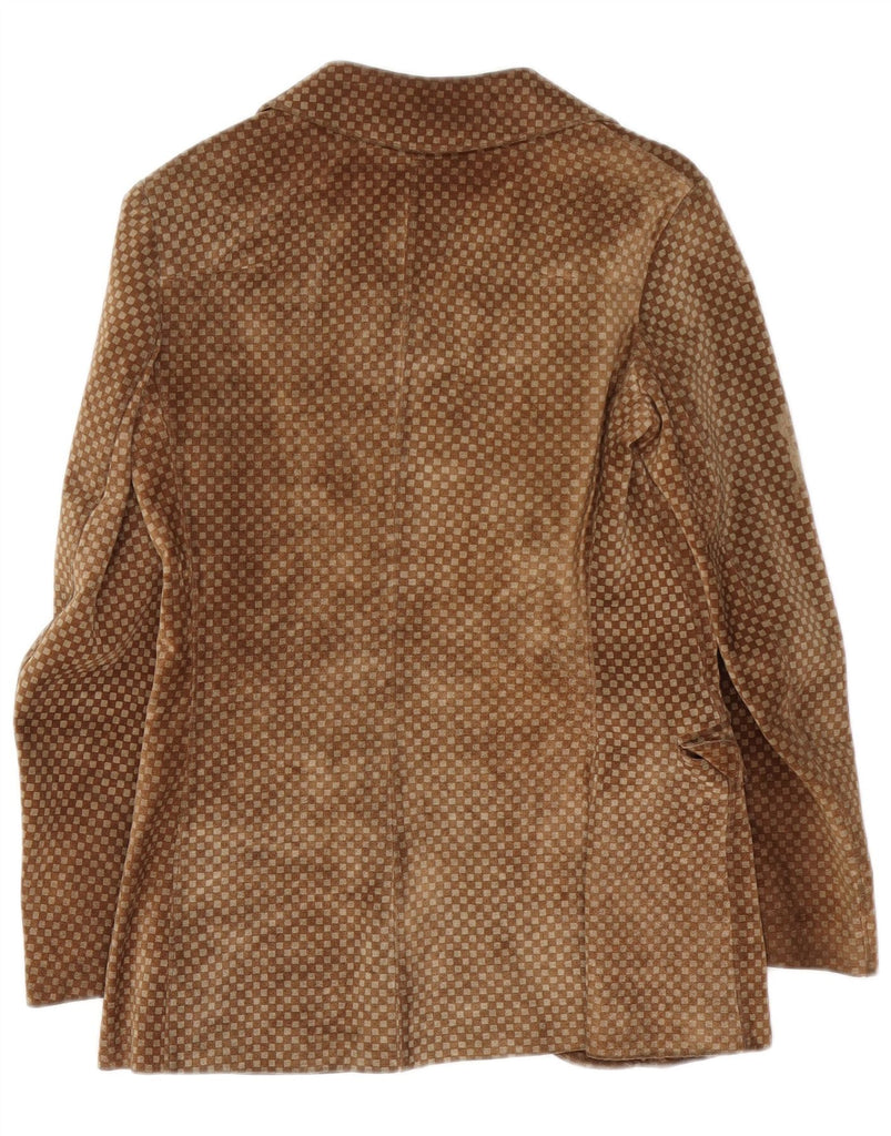 VINTAGE Mujer Ante 3 Botones Blazer Chaqueta Reino Unido 10 Pequeño Marrón Geométrico