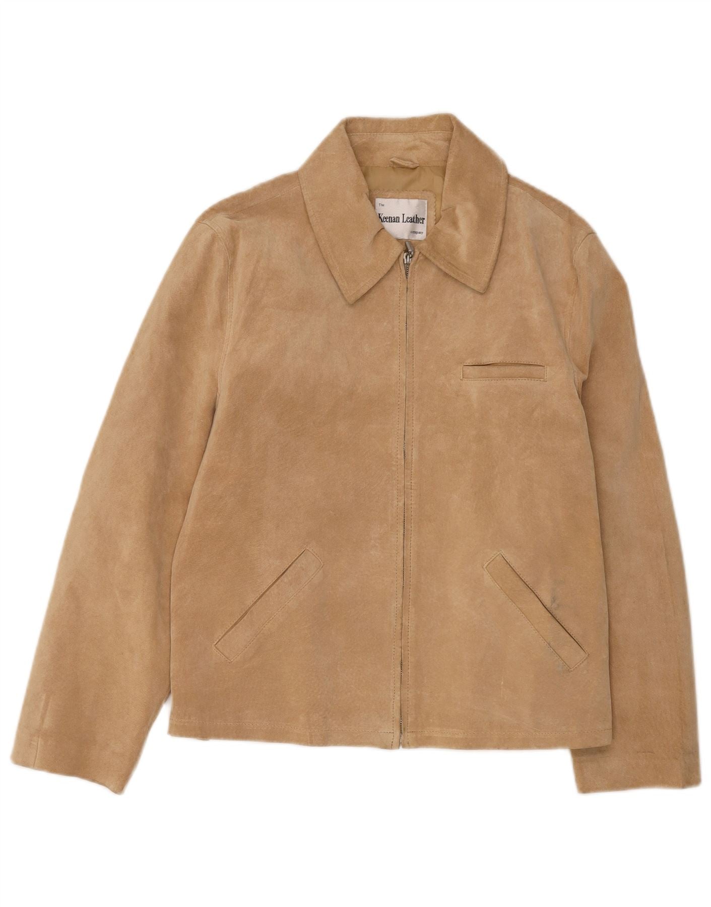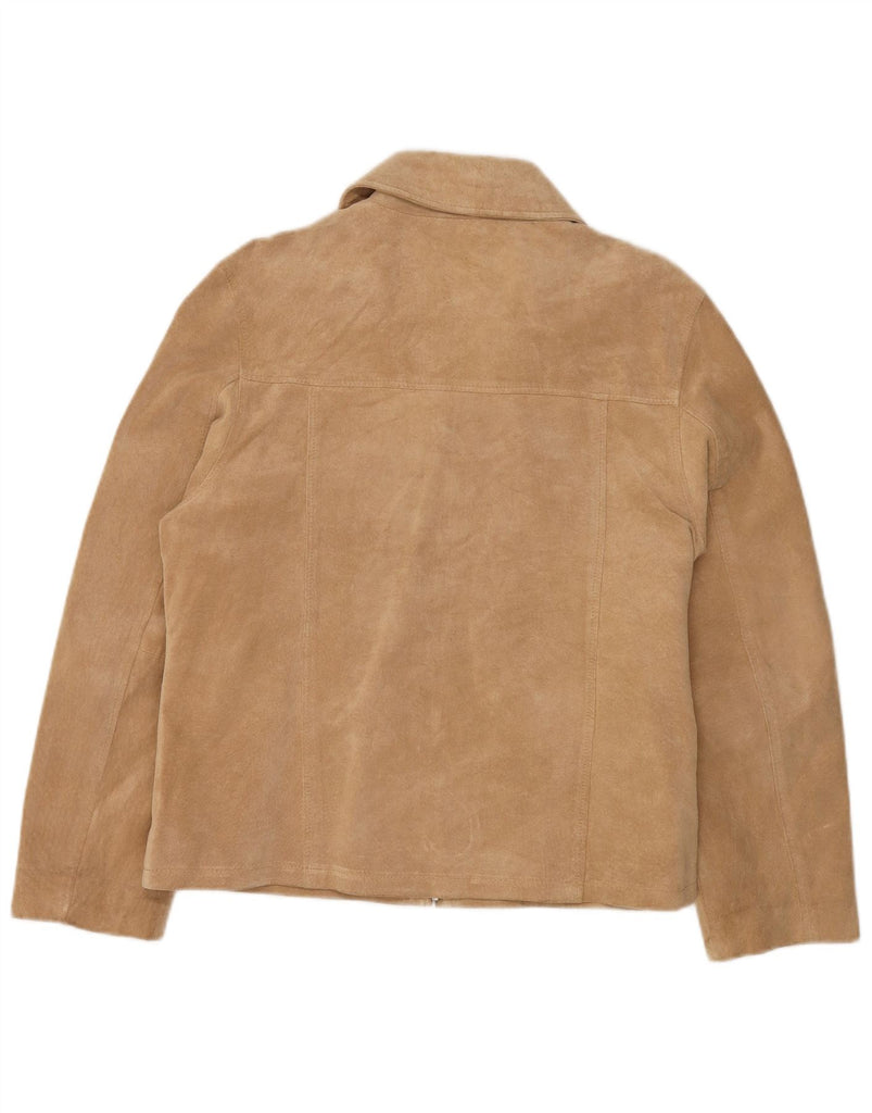 VINTAGE Chaqueta de ante para mujer Reino Unido 14 Cuero beige grande