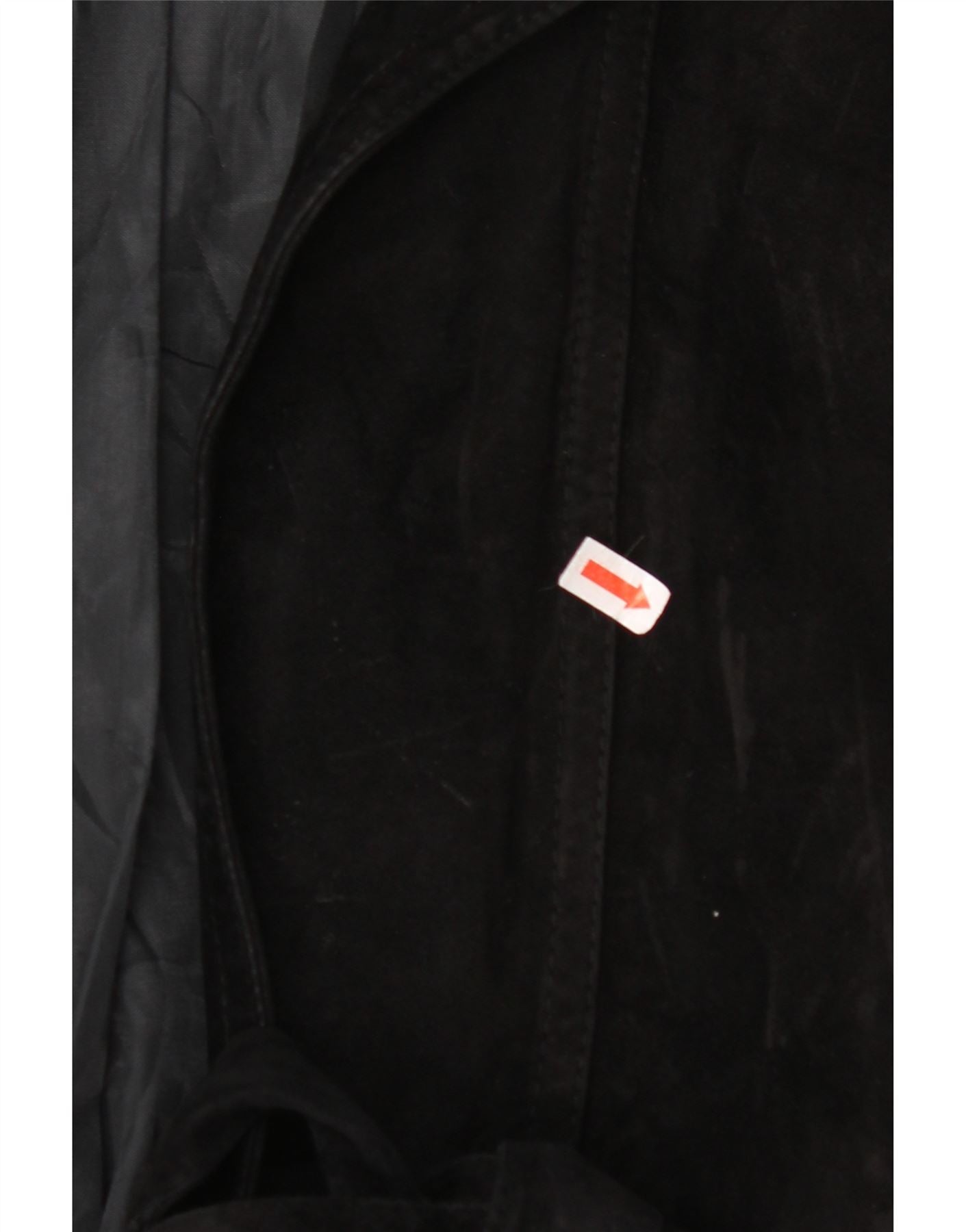 VINTAGE Abrigo de cuero para mujer Reino Unido 12 Bloque de color negro medio