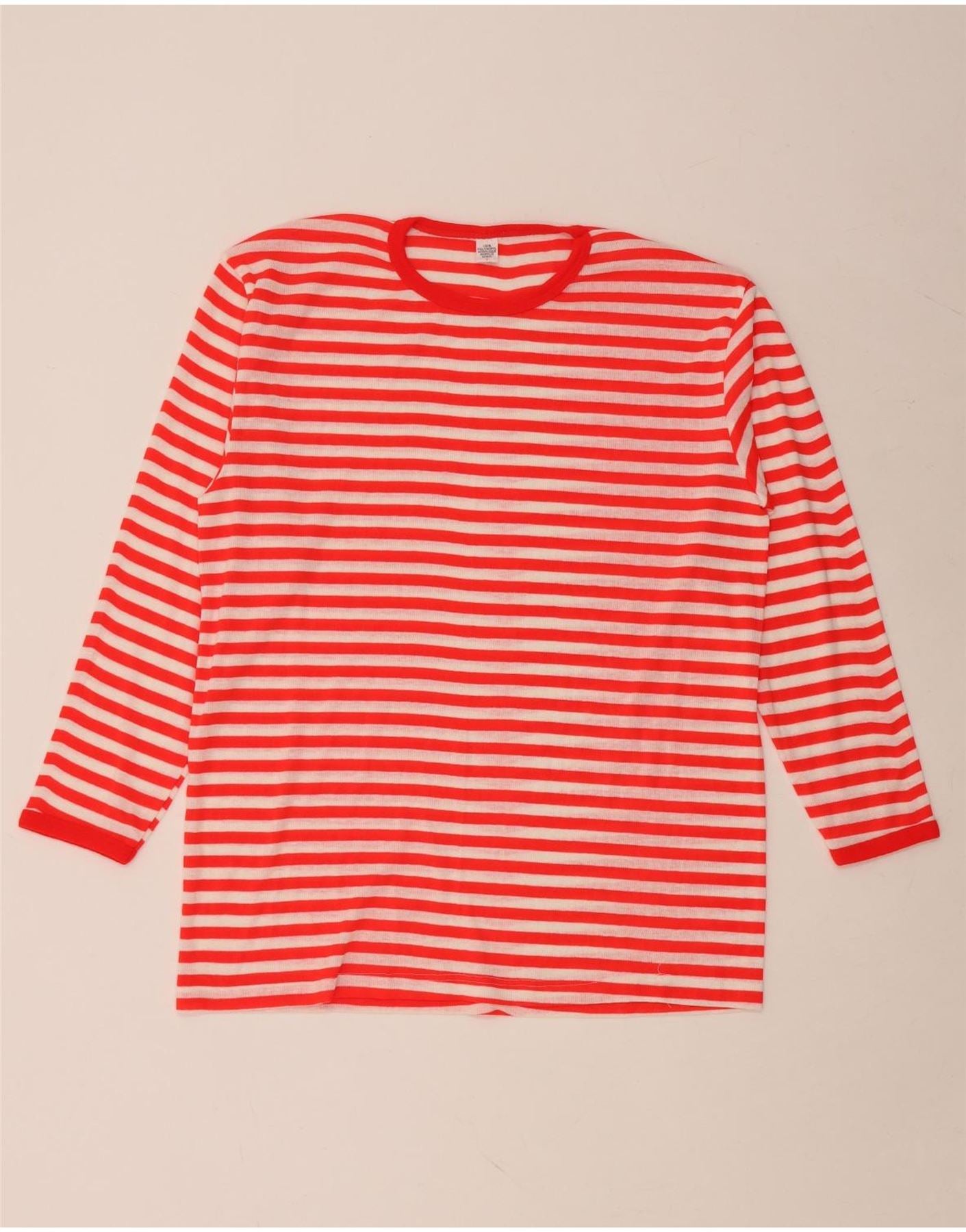 VINTAGE Mujer Top Manga Larga Reino Unido 16 Poliacrílico de rayas rojas grandes