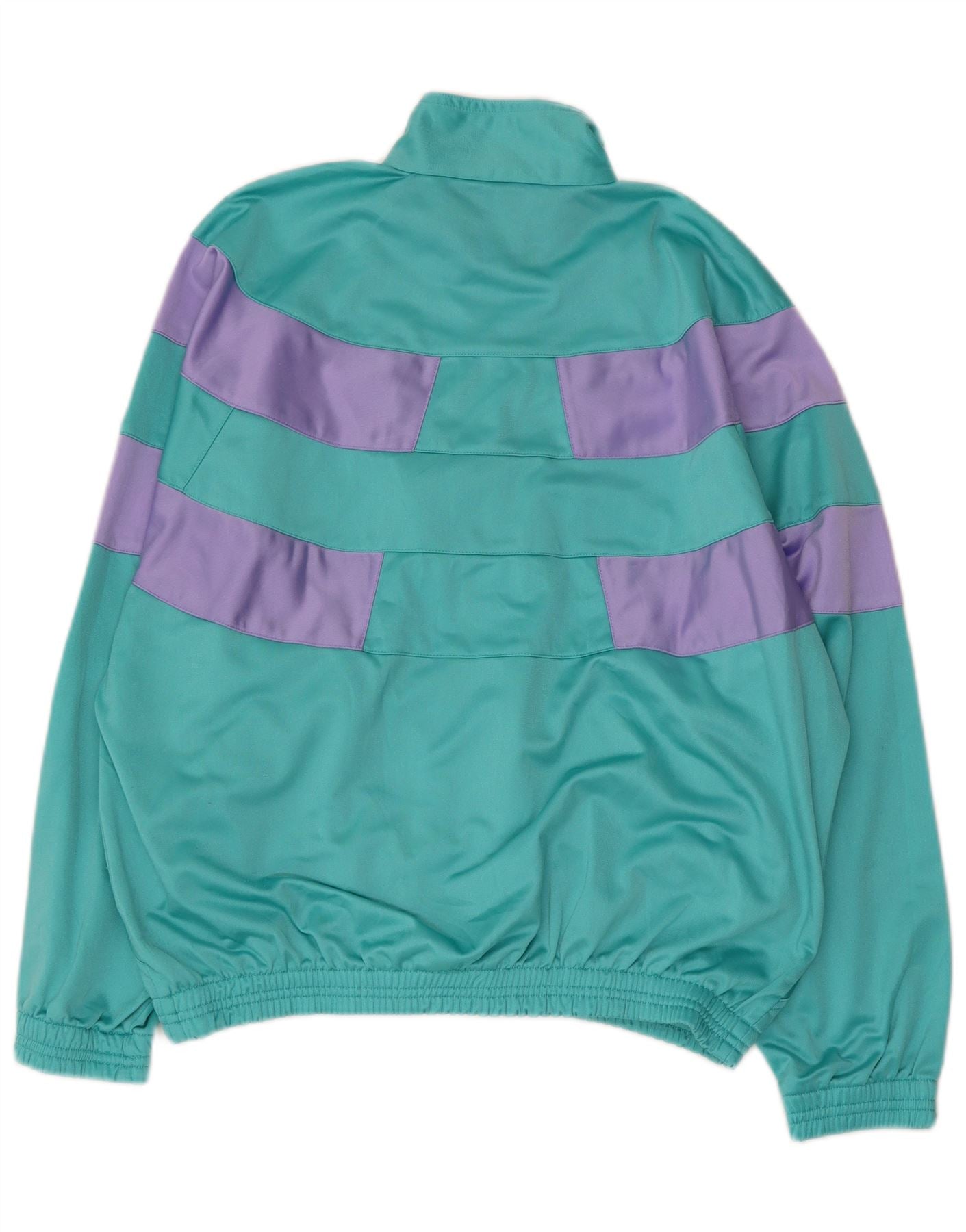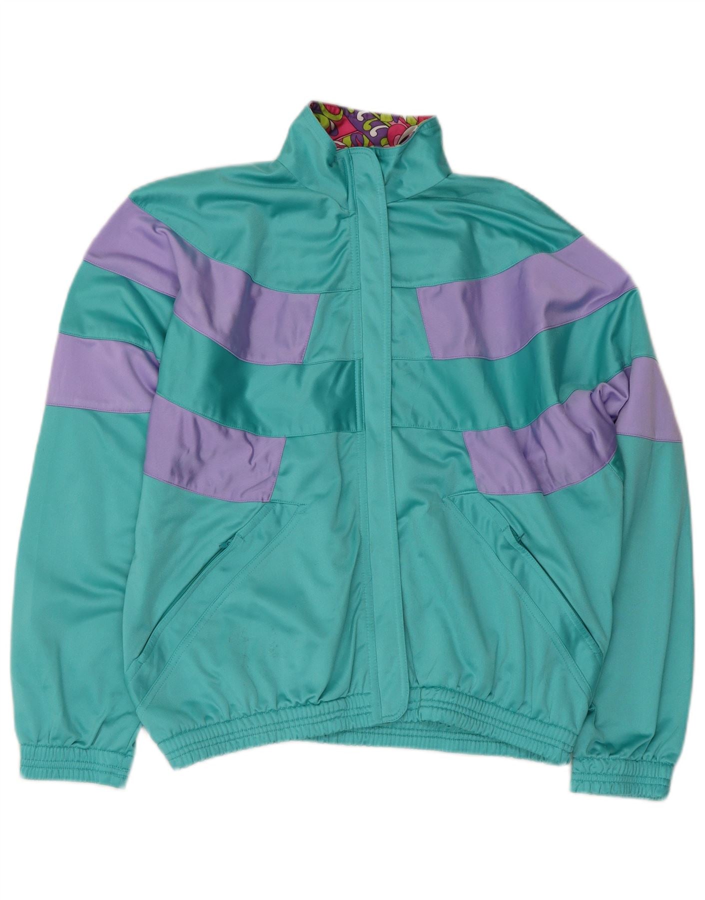 VINTAGE Chaqueta superior de chándal para mujer Reino Unido 18 XL Bloque de color turquesa