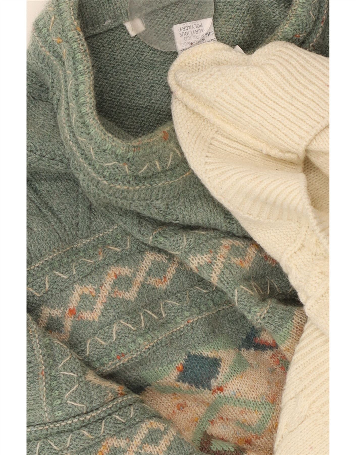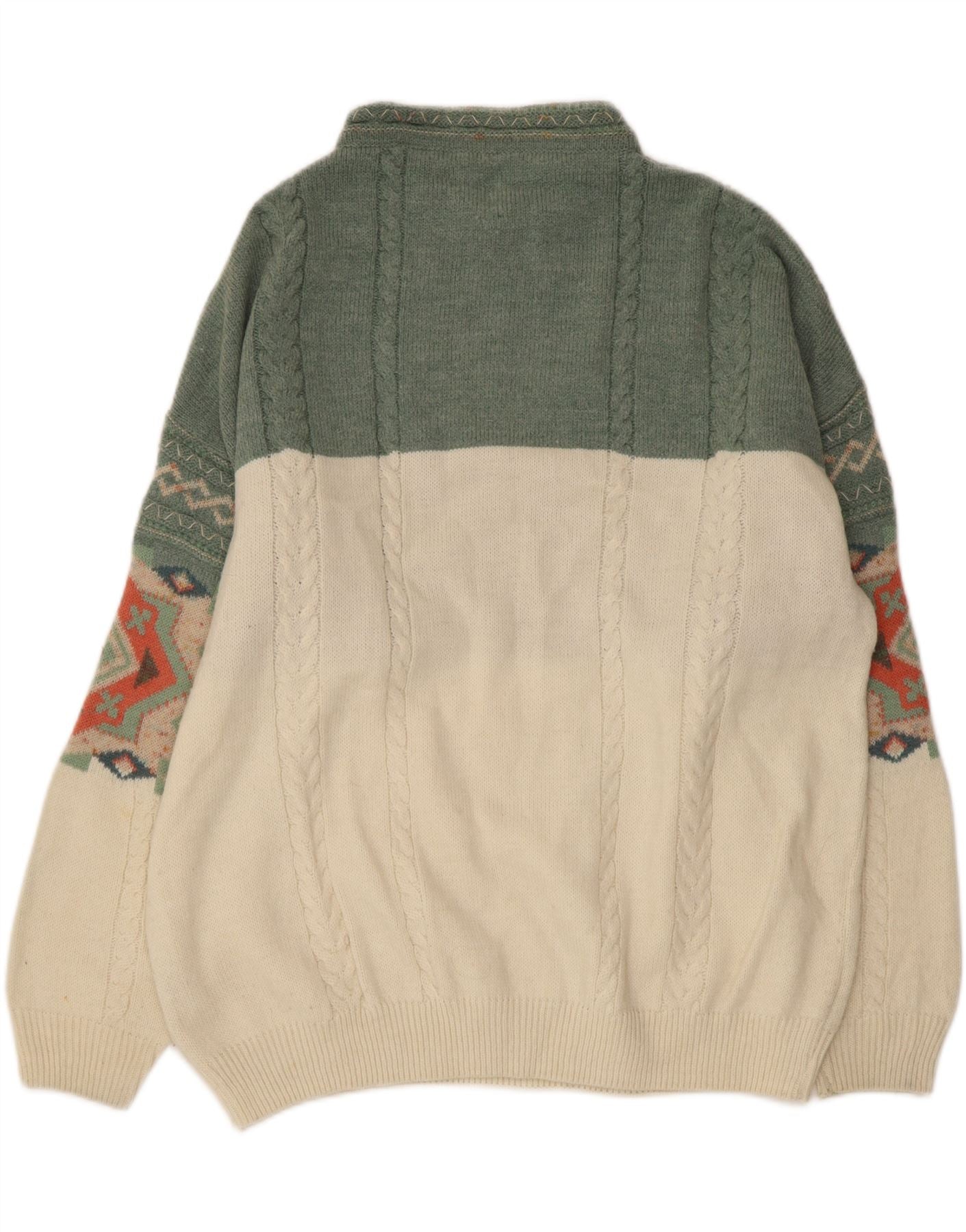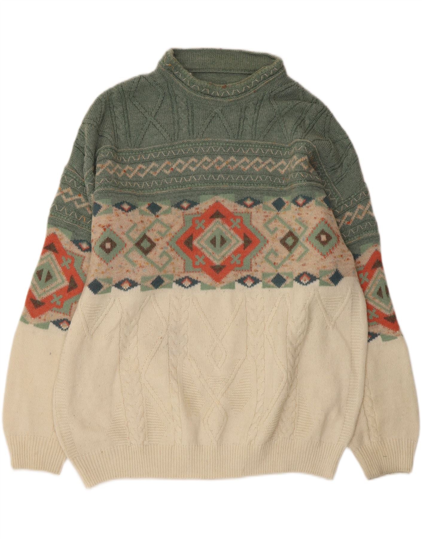 VINTAGE Mujer Cuello Tortuga Jersey Jersey Reino Unido 18 XL Lana Verde Fair Isle