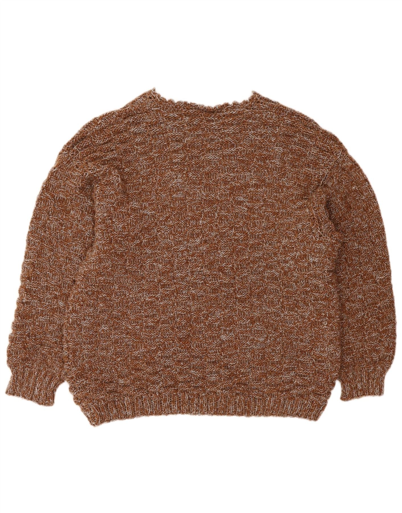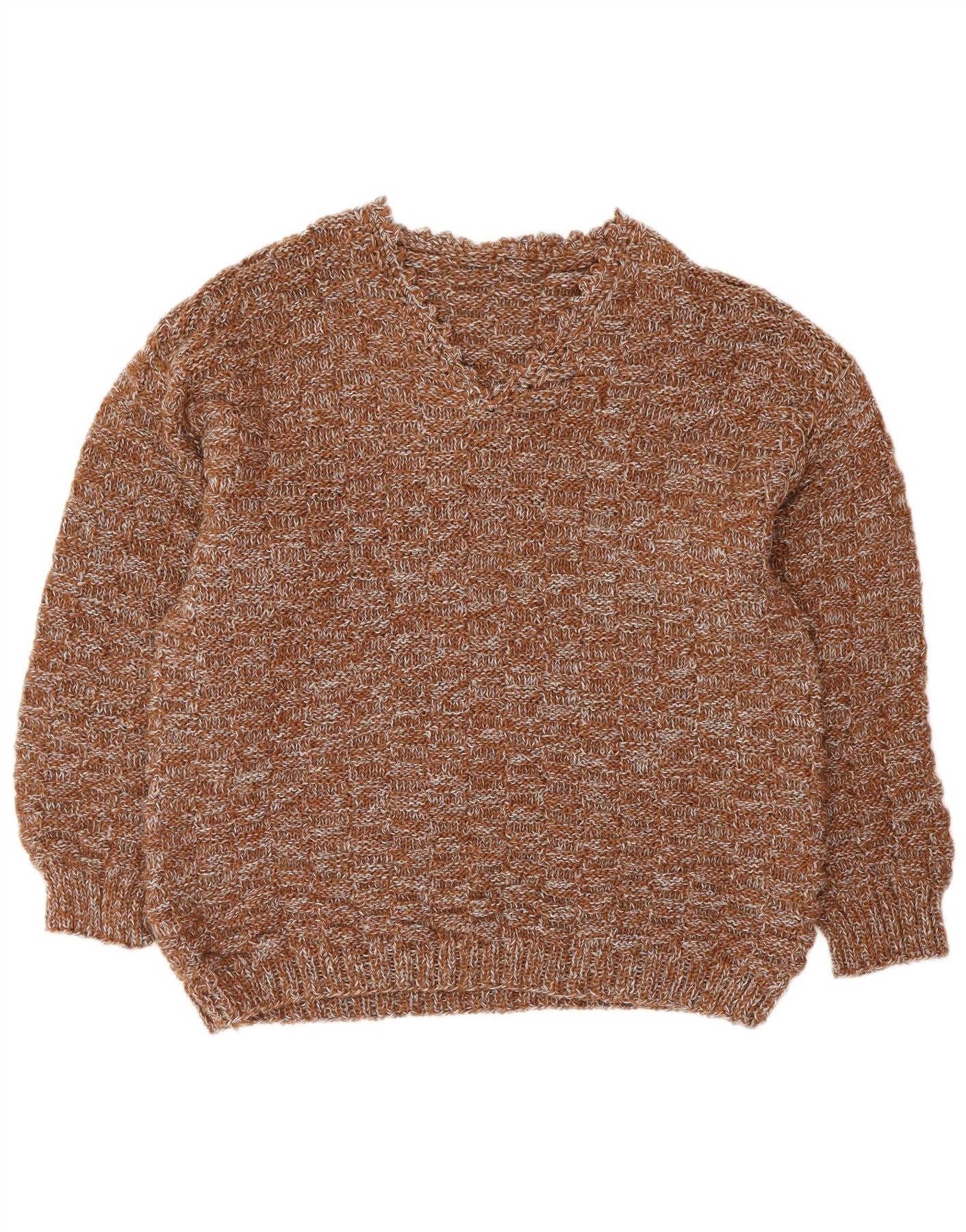 VINTAGE Mujer V-Cuello Jumper Suéter Reino Unido 16 Grande Marrón Flecked