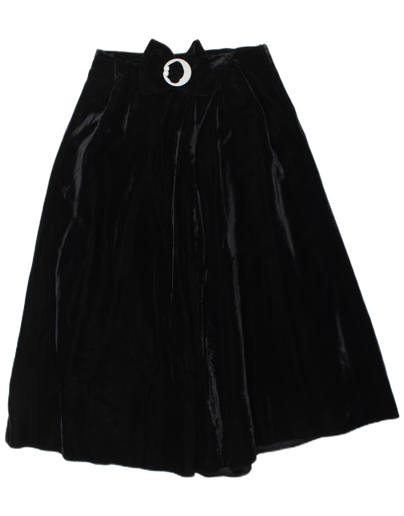 VINTAGE Falda acampanada de cintura alta de terciopelo para mujer IT 44 Medio W28 Negro